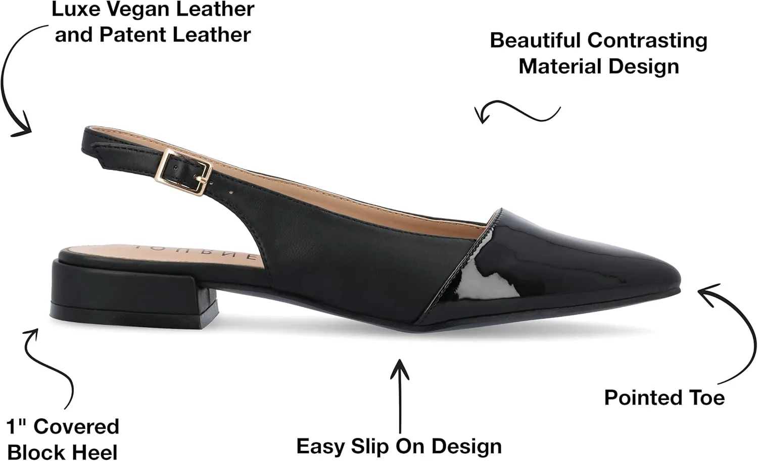 Высота каблука: 1 дюйм. Тип каблука: блочный. Высота платформы: плоская. Ширина обуви: средняя. Тип застежки: пряжка. Тип ремешка: на щиколотке. Форма носка: заостренный. Подкладка: искусственная кожа. Материал верха: веганская кожа. Материал подошвы: синтетический. Стелька: с подкладкой. Все размеры приблизительные и сняты для размера 6. Обратите внимание, что размеры могут незначительно отличаться в зависимости от размера.