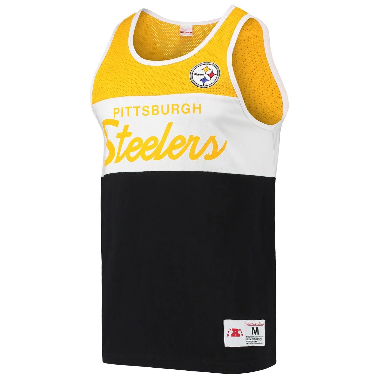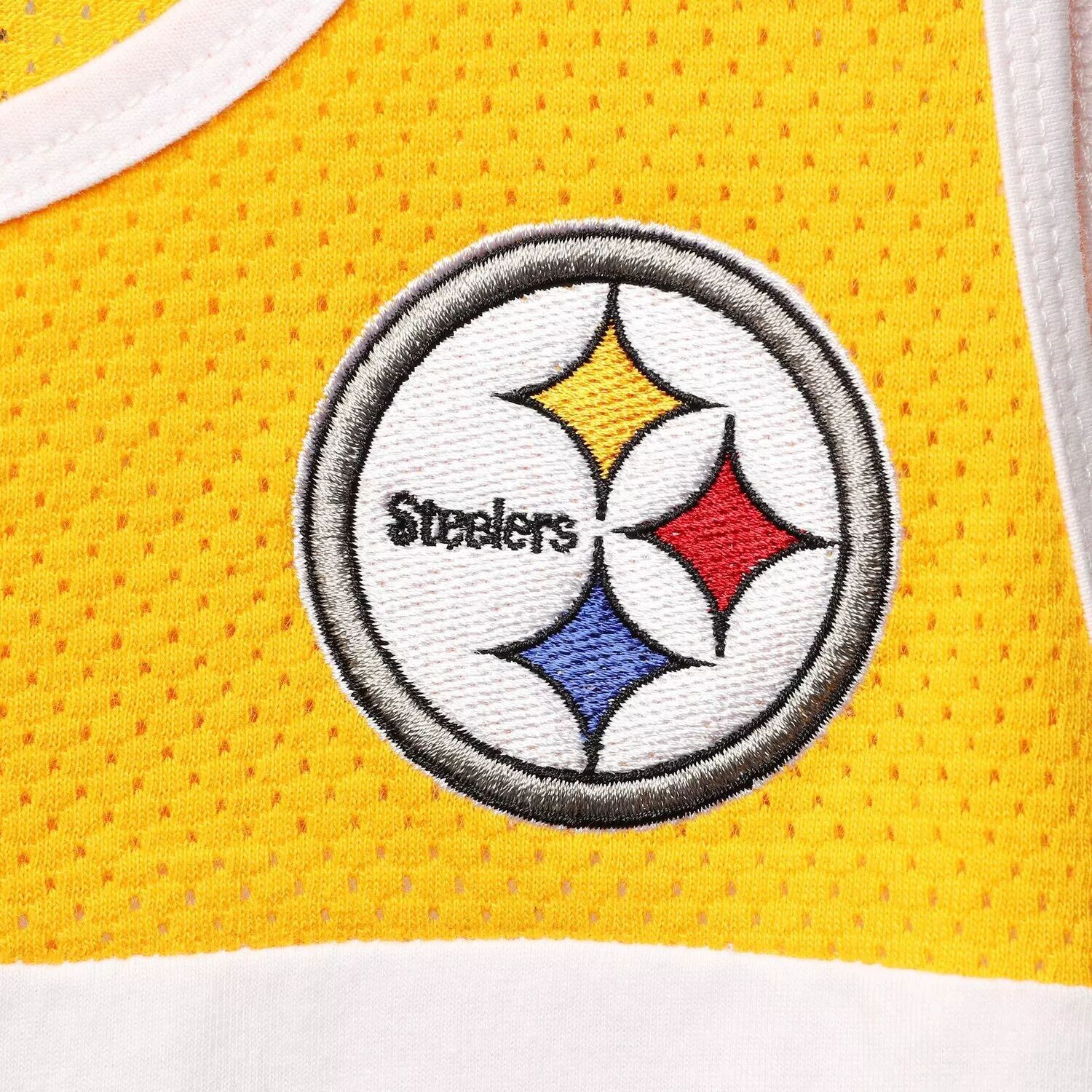 Наденьте эту майку Mitchell & Ness, если хотите почувствовать ветерок в игровые дни «Питтсбург Стилерс». Сетчатые вставки и дизайн без рукавов создают ощущение свежести и комфорта на весь день. Яркая графика «Питтсбург Стилерс» выводит ваш фэндом на передний план, привлекая всеобщее внимание.