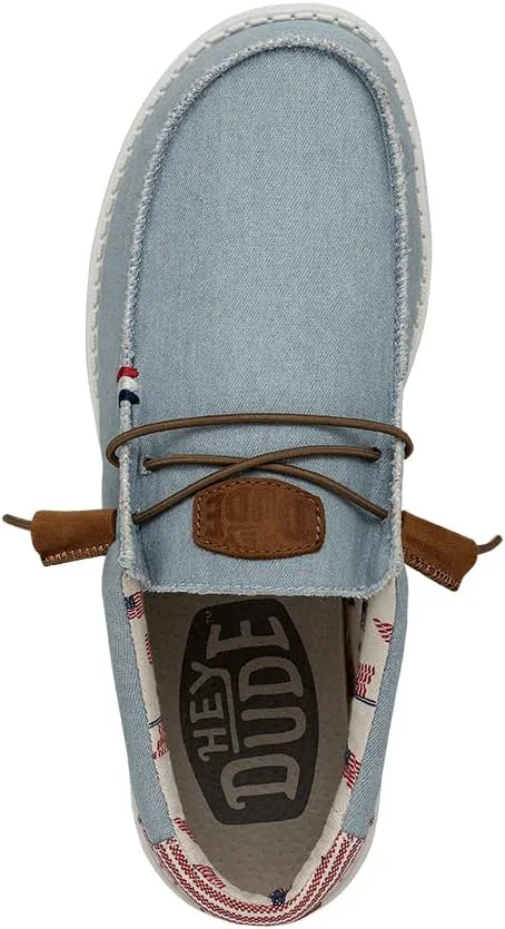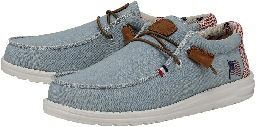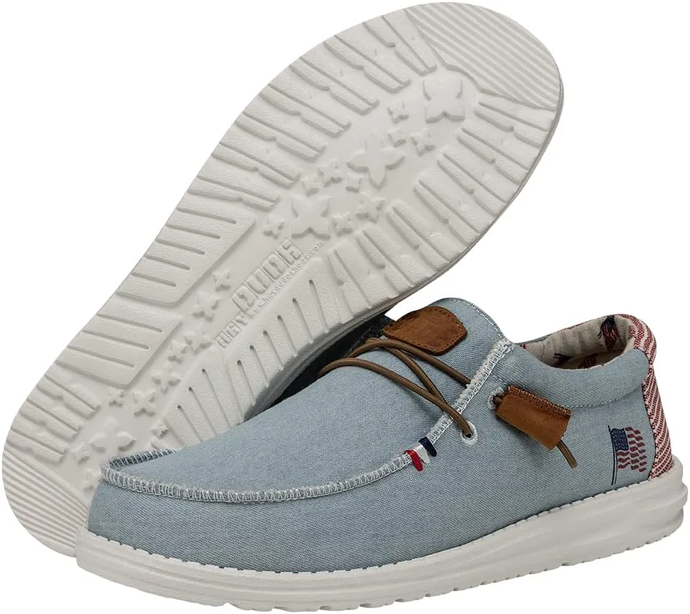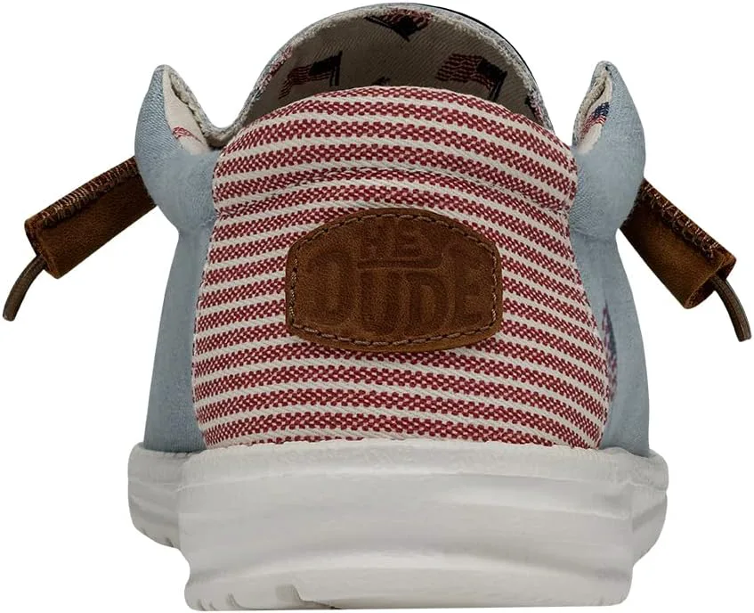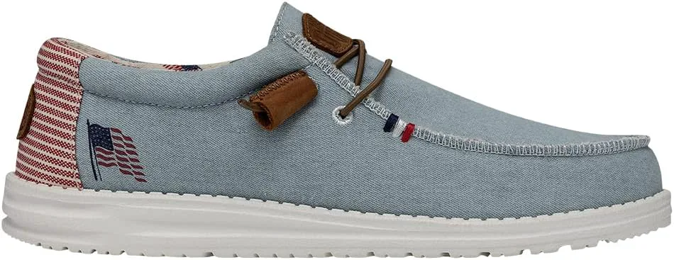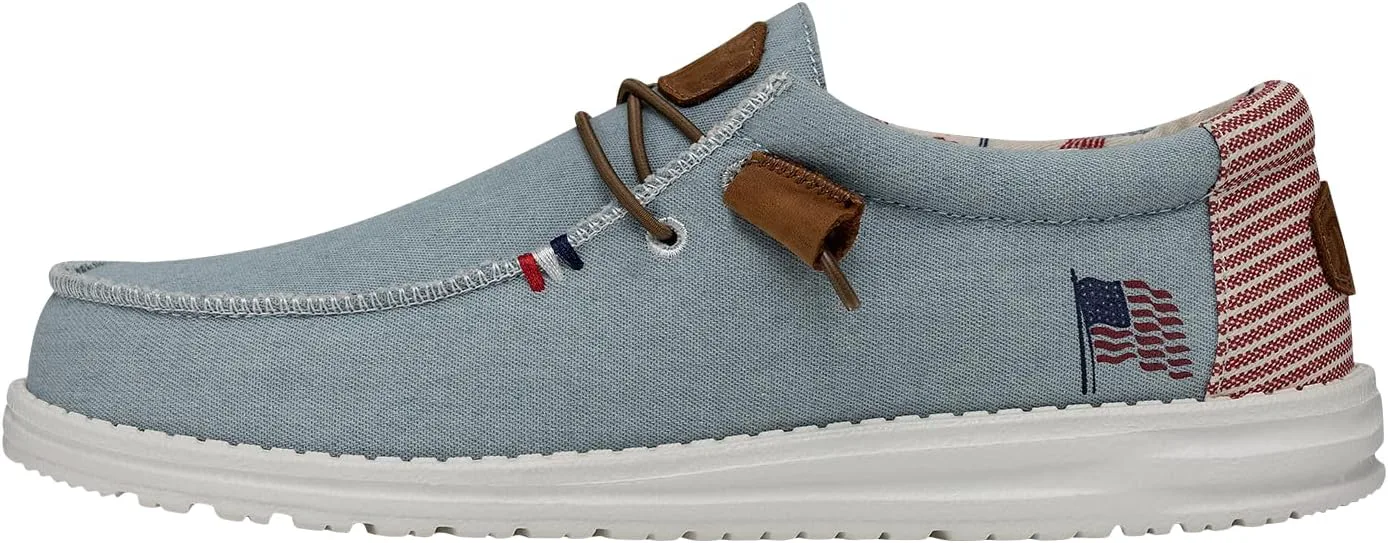 Кеды Hey Dude Wally с патриотическим дизайном идеально подходят для повседневной носки. Дышащий верх из хлопкового канваса. Мягкая и гладкая текстильная подкладка. Съемная стелька с памятью формы для дополнительного комфорта. Модель без шнурков с эластичными шнурками. Дизайн с острым носком типа мокасин. Патриотический принт на пятке. Сверхлегкая подошва Flex & Fold обеспечивает большую гибкость, сцепление и свободу движений.