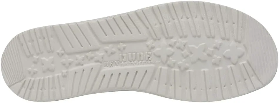 ПАТРИОТИЧНЫЕ ДЕТАЛИ: Продемонстрируйте свой патриотизм с помощью патриотичного принта на задней панели, добавляя стиль и индивидуальность вашему образу. Независимо от того, празднуете ли вы праздники,будь то мероприятия или просто выражение национальной гордости, эти повседневные туфли делают смелое заявление. ГИБКАЯ ПОДОШВА: Мужские прогулочные туфли Hey Dude оснащены ультралегкой гибкой и складывающейся подошвой Flex and Fold, которая превосходит обычную обувь. Эта инновационная конструкция обеспечивает гибкость и сцепление. Гибкая подошва адаптируется к вашим движениям, обеспечивая стабильность и комфорт на каждом шаге, будь то в оживленных городских улицах, на природе или просто во время прогулок. РАЗЛИЧНЫЕ РАЗМЕРЫ: Летние туфли для мужчин и женщин доступны в цветах Off-White Patriotic и Stars and Stripes. Они соответствуют размеру и имеют среднюю ширину. Вы можете выбрать из следующих размеров - 6, 7, 8, 9, 10, 11, 12, 13, 14 и 15.
