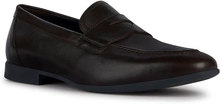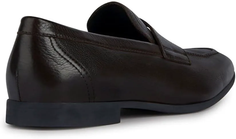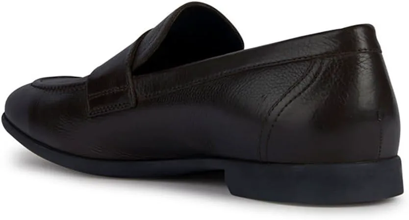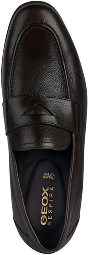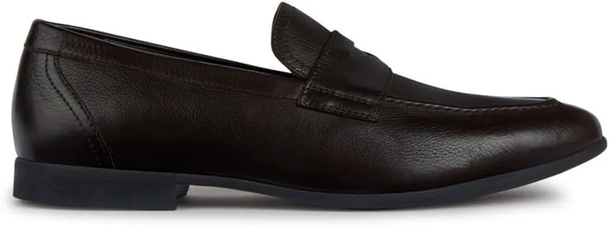 Мужские лоферы Geox из темно-коричневой кожи. Подкладка из коричневой кожи, стелька из коричневой кожи, черная резиновая подошва. Мужские туфли Geox U35CCA Sapienza темно-коричневого цвета, каталог Весна-Лето 2023. Тип: Мужская обувь - Лоферы