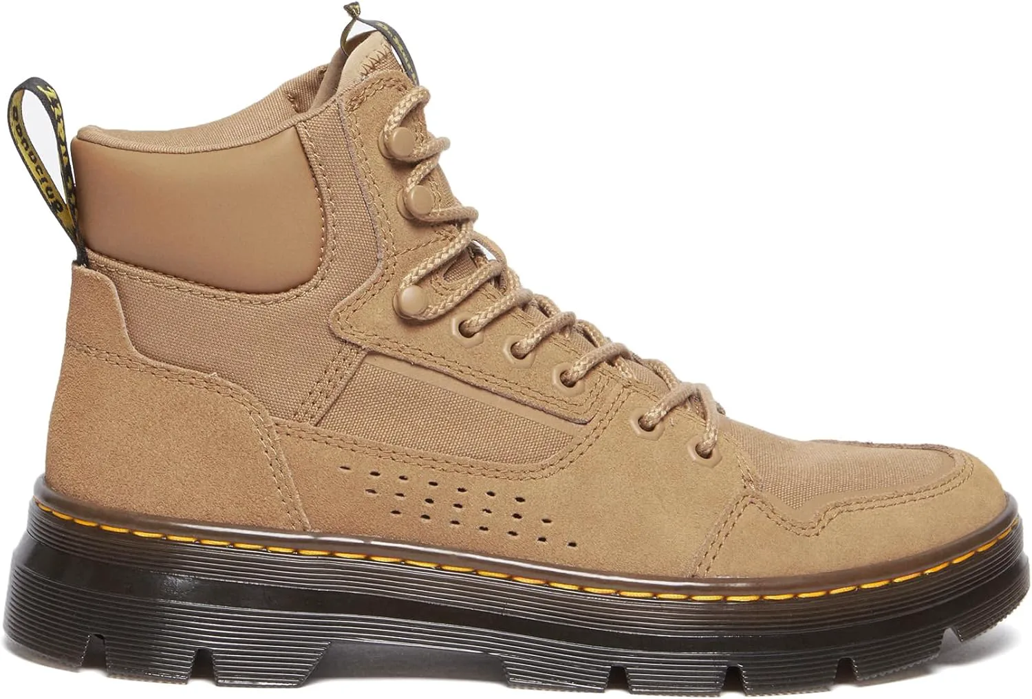 Сделанные из прочной, но легкой смеси Ajax, Ripstop и неопрона, эти ботинки удобны с первого шага. Модель Rilla оснащена петелькой на пятке AirWair, фирменной язычковой нашивкой и желтой строчкой по ранту.