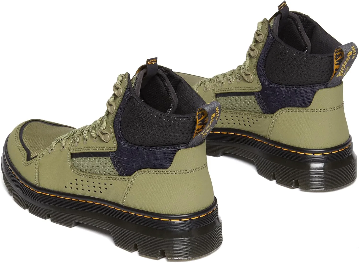 Сделанные из прочной, но легкой смеси Ajax, Ripstop и неопрона, эти ботинки удобны с первого шага. Модель Rilla оснащена петелькой на пятке AirWair, фирменной язычковой нашивкой и желтой строчкой по ранту.