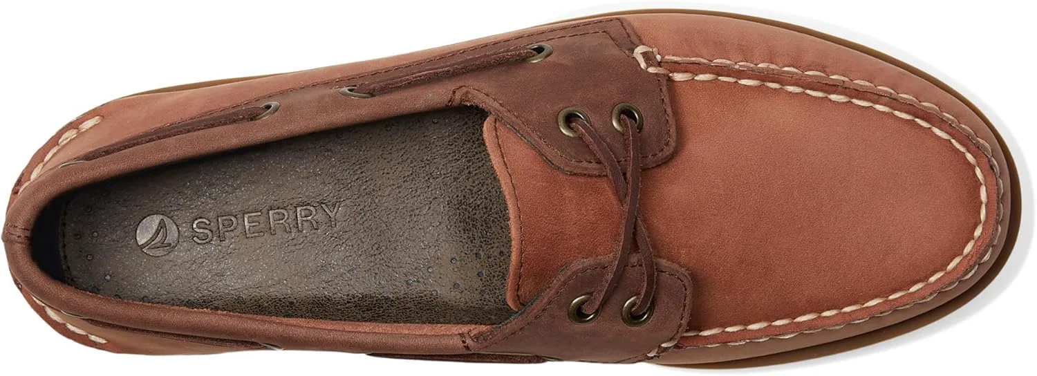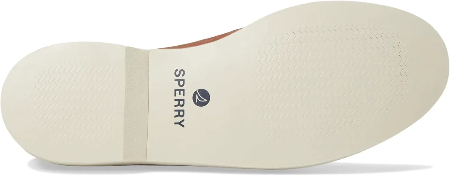 Текстильный верх с богатым вышитым морским флаговым принтом Ручное шитье мокасинным методом Фиксированная шнуровка из сыромятной кожи и скрытая вставка для легкого надевания/снятия Не ржавеющие люверсы Фирменная технология Sperry Wave-Siping с остро прорезанным рисунком протектора для сцепления на мокрой/сухой поверхности