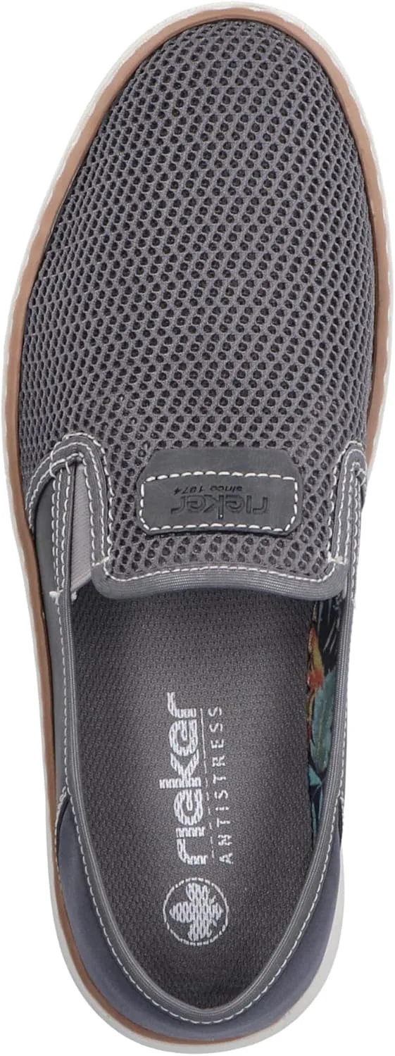 Dream team style and comfort. This Rieker slipper in stone grey is your buddy if you do not know whether slipper mules. The elastic insert is a great relief especially when putting on and taking off. The lightweight and shock-absorbing sole ensures a comfortable fit. Another plus is the extra soft insole. Thanks to the comfort width G 1 2, the toes are offered more freedom of movement. The shoe has the practical flip heel feature: the heel part folds over when you slip on and you can wear the slipper as a mule. So nothing like going on.