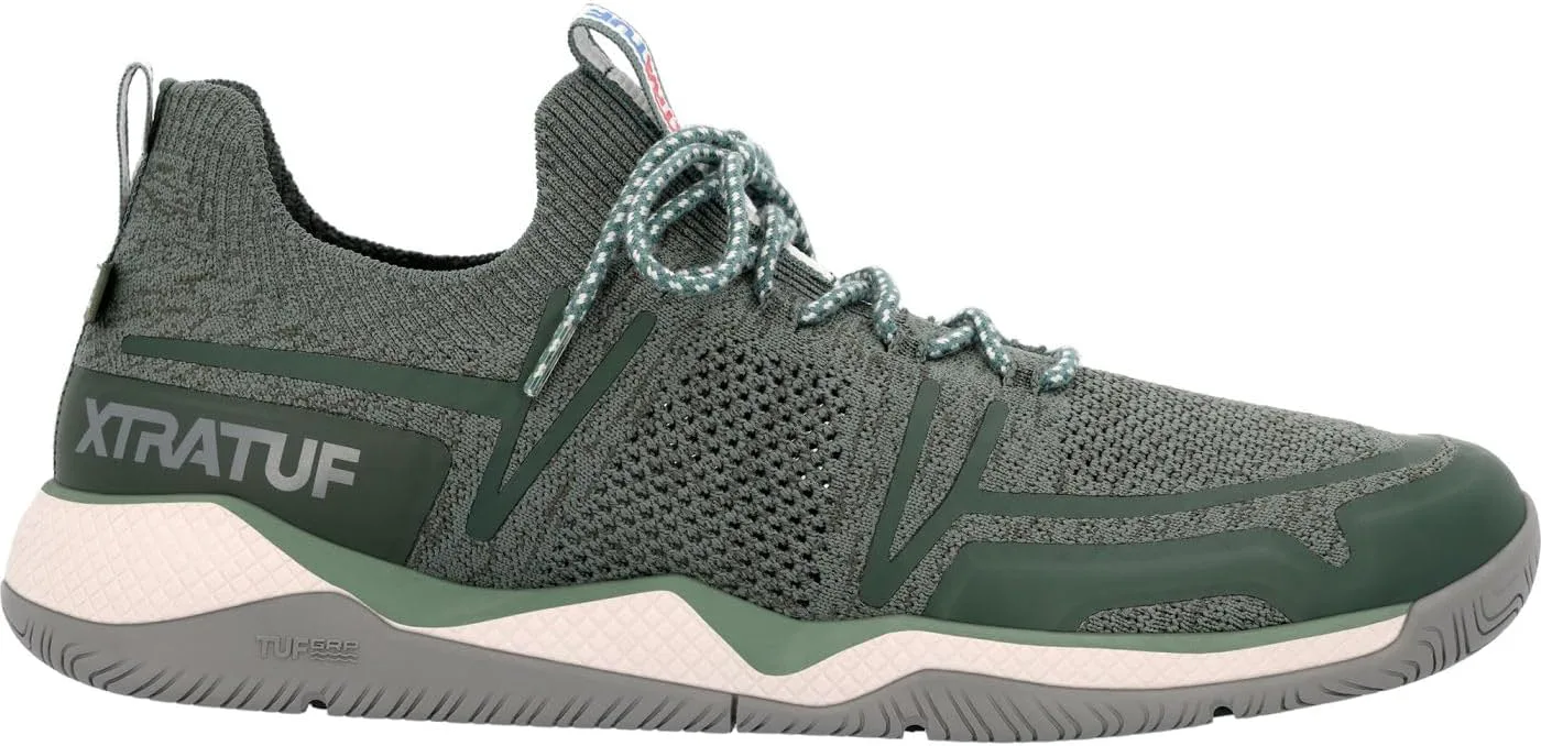 Кроссовки для мужчин Kiata Drift от XTRATUF с высокими эксплуатационными характеристиками оснащены инновационным верхом без подкладки, обеспечивающим быстрое высыхание и вентиляцию. Легкий верх, напоминающий носок, в сочетании с амортизирующей средней подошвой с высокой отдачей и перфорированной стелькой обеспечивает вентиляцию, поддержку и стабильность. А революционная подошва TUFgrp предлагает высочайшее сцепление на ровных твердых поверхностях и неровной местности. TUFgrp независимо сертифицирован и оценивается SRC для обеспечения лучшей в своем классе производительности.