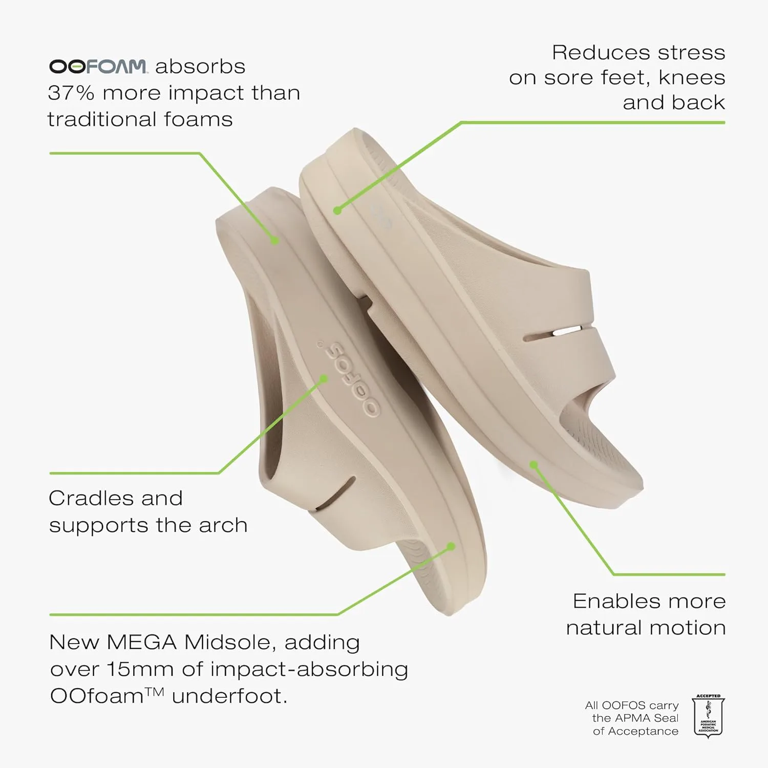 OOahh - эволюция OOriginal, OOahh slide использует проверенную основу технологии OOfoam + запатентованную конструкцию стельки с ремешком в виде скользя, которая стала бестселлером в линейке OOFOS. Технология OOfoam - наша революционная технология OOfoam поглощает на 37% больше воздействия, чем традиционные пены для обуви, чтобы снизить нагрузку на ваши ноги, Суставы и спина. Кроме того, пену с закрытыми ячейками можно стирать в машине и она предназначена для минимизации запаха. Запатентованные стельки - наши запатентованные стельки и опоры сводов, снижая энергозатраты на лодыжки до 47% по сравнению с обувью конкурентов. Так что ходить проще. Восстановление происходит быстрее. И вы чувствуете себя лучше. Научные данные - исследования показывают, что OOFOS снижает нагрузку, уменьшает сдавливающие силы и поддерживает подвижность стопы по сравнению с традиционной обувью. В результате каждая модель OOFOS имеет Печать одобрения Американской подиатрической медицинской ассоциации