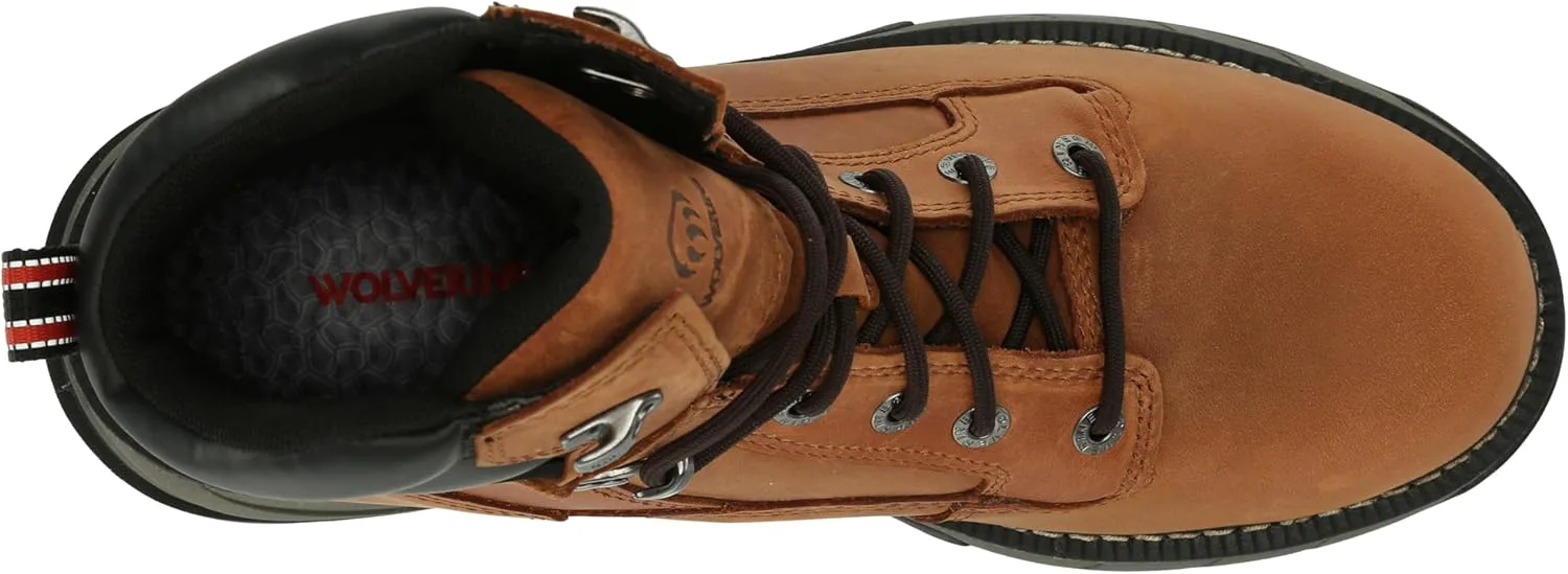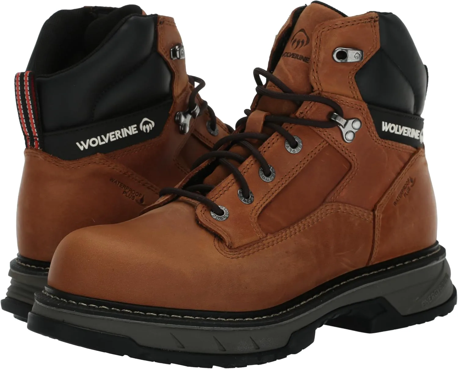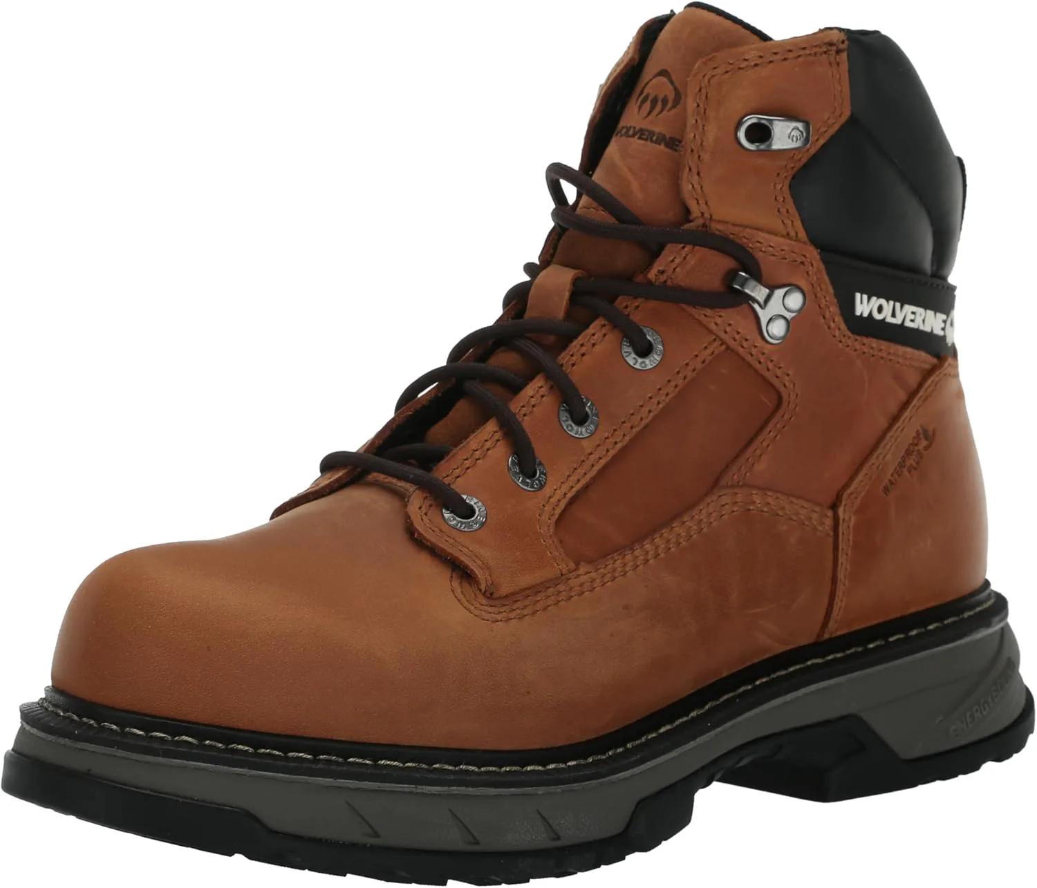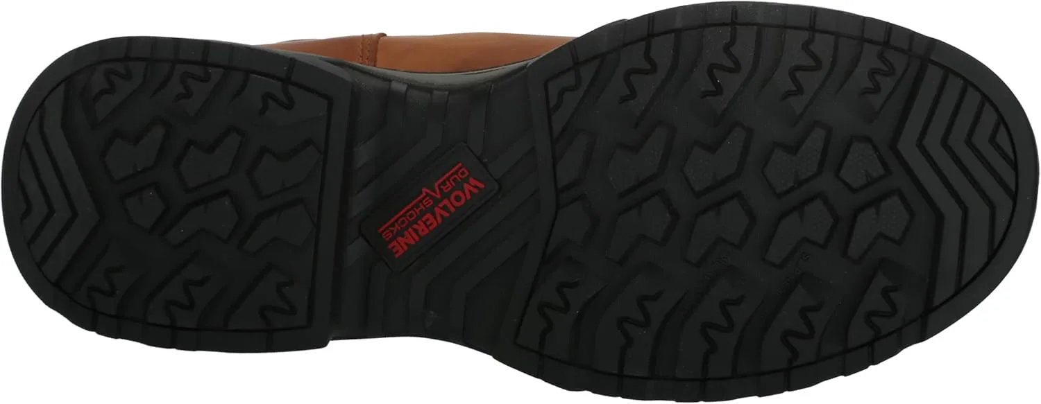 Верх из премиальной водонепроницаемой кожи полного зерна Воздухопроницаемая водонепроницаемая мембрана с подкладкой из влагоотводящей сетки Высокопрочная амортизация стельки EnergyBound легкая, с мощным отскоком, разработанная для стабильной работы смена за сменой Амортизирующие вставки Wolverine DuraShocks Dual Suspension обеспечивают надежное поглощение ударов в подошве для снижения нагрузки Проверенная временем конструкция Goodyear Welt