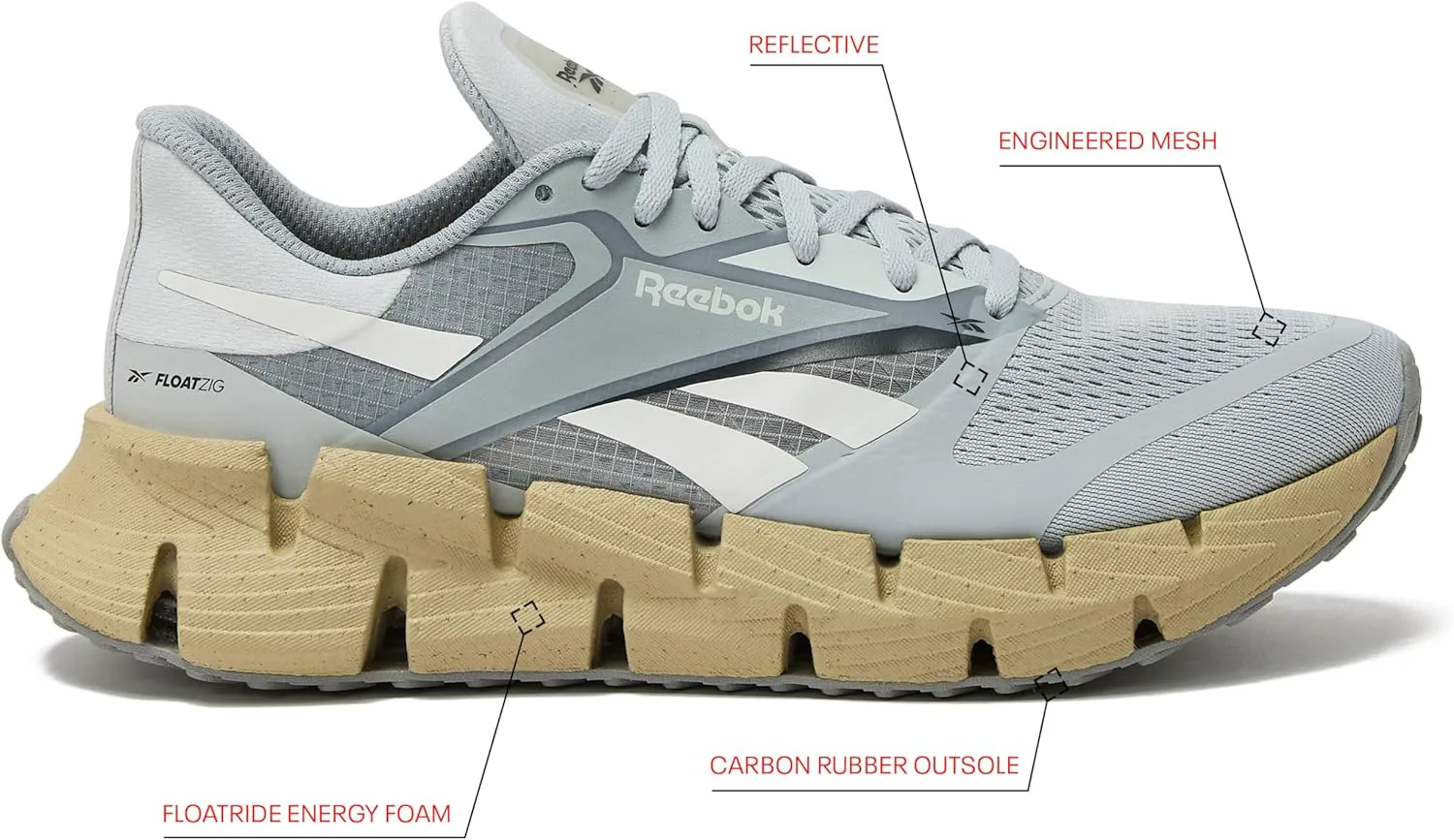 REEBOK TECHNOLOGY - Почему выбирать между мягкой и пружинной? Быстро и плавно? Познакомьтесь с новой формой бега - высокоэнергетическими мужскими беговыми кроссовками FloatZig 1. Доступно в мужском размере от 7 до 14. ЛЕГКИЙ И КОМФОРТНЫЙ - Floatride Energy Foam создает премиальную технологию легкой пены в геометрии, которая улучшает амортизацию, возврат энергии и плавный переход, создавая уникальный опыт под ногами. ДЫШАЩИЙ СЕТЧАТЫЙ ВЕРХ - Инженерный сетчатый верх с отражающими накладками позволяет бегать или ходить день и ночь в комфорте, Эти спортивные кроссовки для мужчин стали идеальной повседневной обувью для активных мужчин. ПРОЧНАЯ РЕЗИНОВАЯ ПОДОШВА - Подошва из углеродной резины обеспечивает этим кроссовкам превосходное сцепление на переменных беговых поверхностях, будь то тропа, спортзал или дорога. СОЗДАНО ДЛЯ ДЛИННЫХ ПРОБЕЖЕК - Промежуточная подошва из пенопласта Floatride Energy в зигоподібной форме снижает лишний вес и жесткость, чтобы вы могли продолжать движение, независимо от того, бегаете ли вы 5 км или марафон.