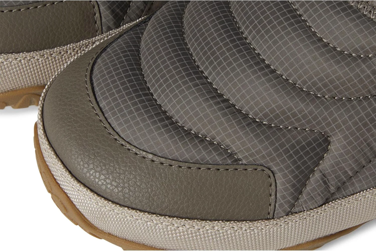 Верх из приключенческого рипстопа, готовый к любым условиям, на 100% из переработанных материалов, вдохновленный классическим туристическим снаряжением, воротник из ребристого трикотажа на 100% из переработанного полиэстера, складной задник на 50% из переработанного полиэстера для легкого надевания и снятия