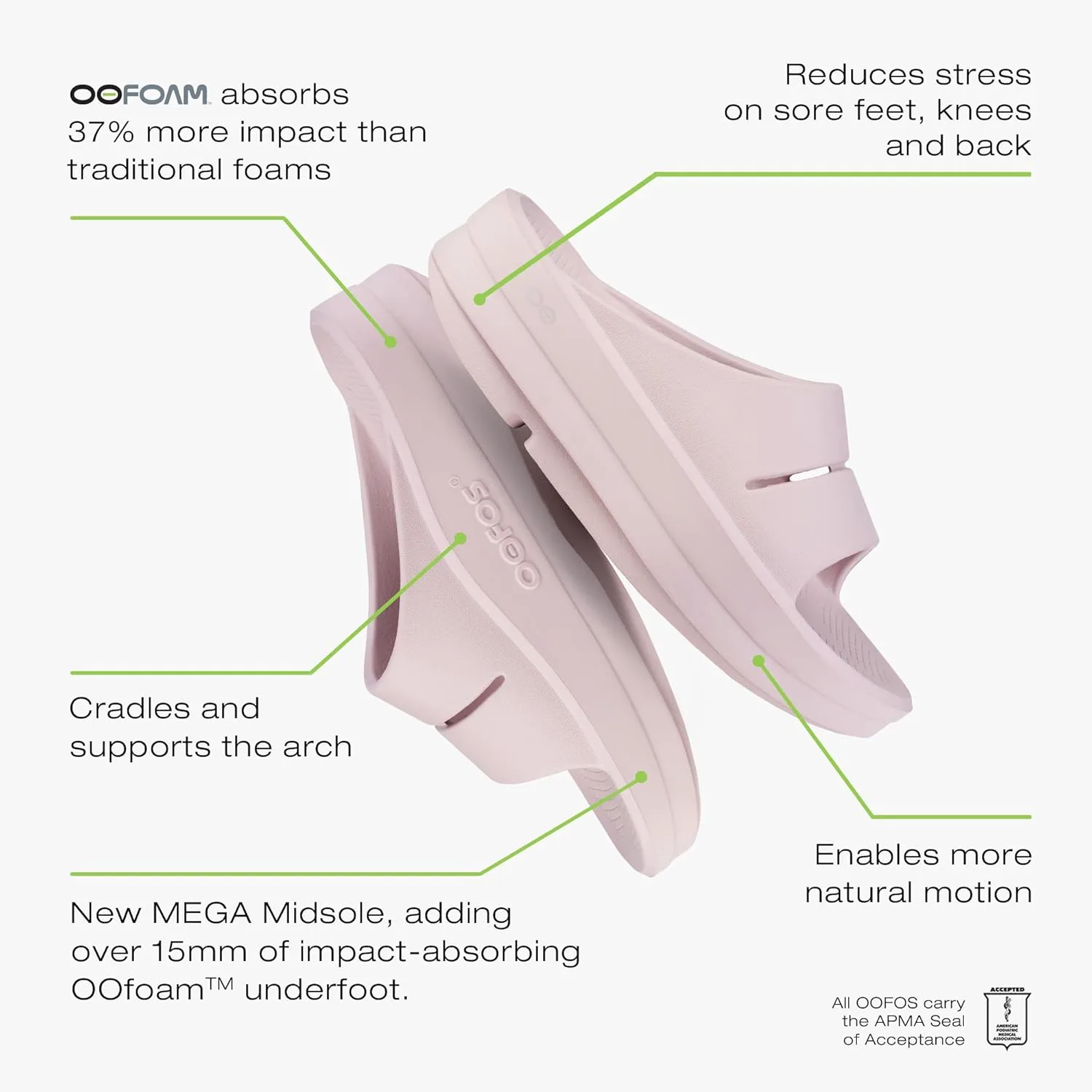 OOahh - эволюция OOriginal, OOahh slide использует проверенную основу технологии OOfoam + запатентованную конструкцию стельки с ремешком в виде скользя, которая стала бестселлером в линейке OOFOS. Технология OOfoam - наша революционная технология OOfoam поглощает на 37% больше воздействия, чем традиционные пены для обуви, чтобы снизить нагрузку на ваши ноги, Суставы и спина. Кроме того, пену с закрытыми ячейками можно стирать в машине и она предназначена для минимизации запаха. Запатентованные стельки - наши запатентованные стельки и опоры сводов, снижая энергозатраты на лодыжки до 47% по сравнению с обувью конкурентов. Так что ходить проще. Восстановление происходит быстрее. И вы чувствуете себя лучше. Научные данные - исследования показывают, что OOFOS снижает нагрузку, уменьшает сдавливающие силы и поддерживает подвижность стопы по сравнению с традиционной обувью. В результате каждая модель OOFOS имеет Печать одобрения Американской подиатрической медицинской ассоциации