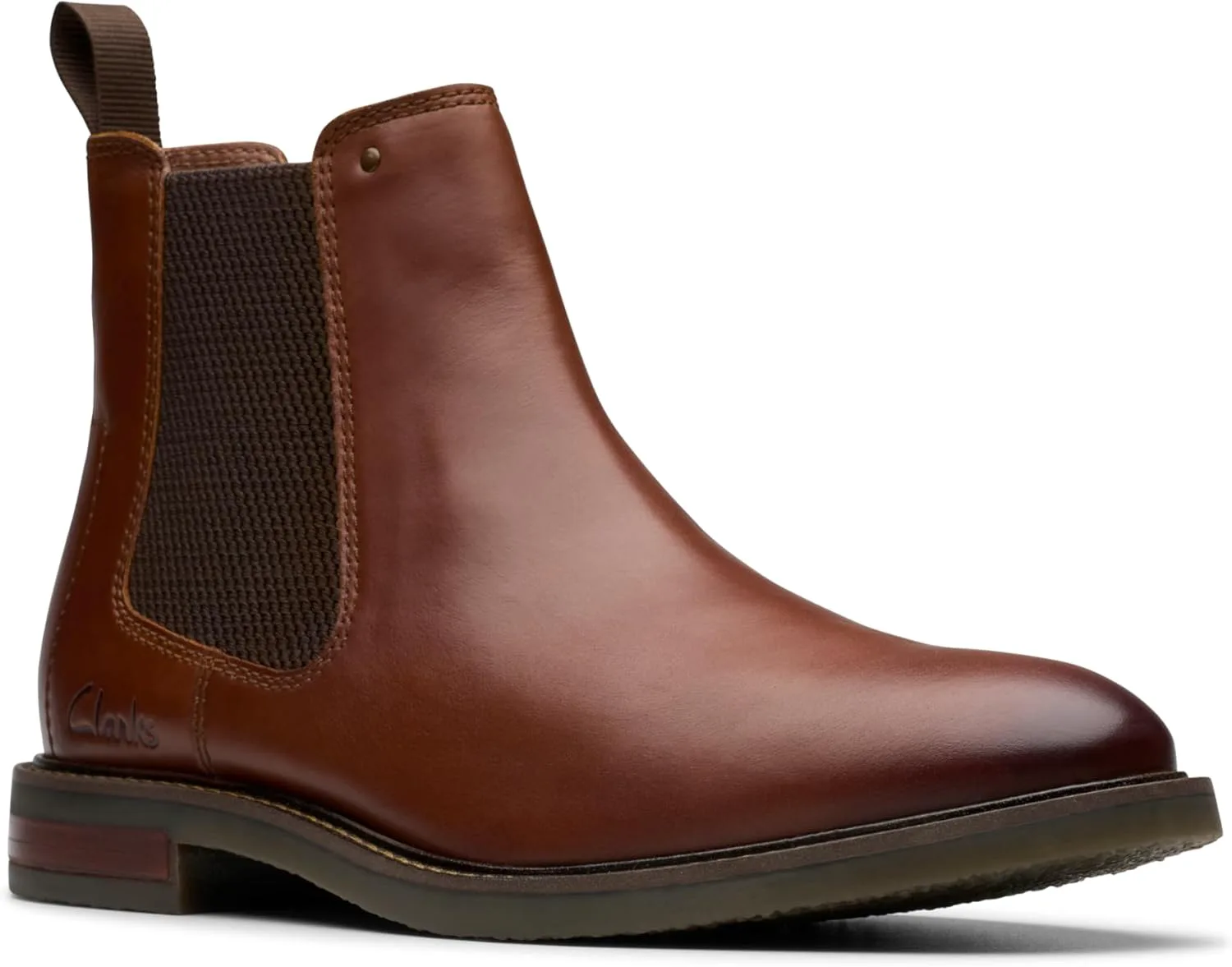 Ботинки возвращаются с большим размахом! Ботинки Clarks Collection Jaxen Easy с классическим силуэтом и комфортом помогут смело встретить день Верх из премиальной светло-коричневой кожи Эластичная вставка и петля на пятке облегчают надевание и снятие Легкая и гибкая резиновая подошва