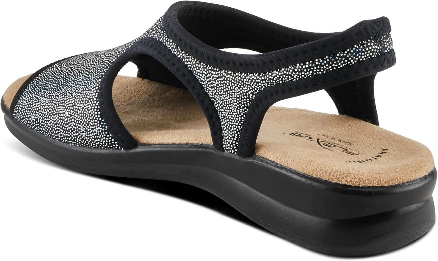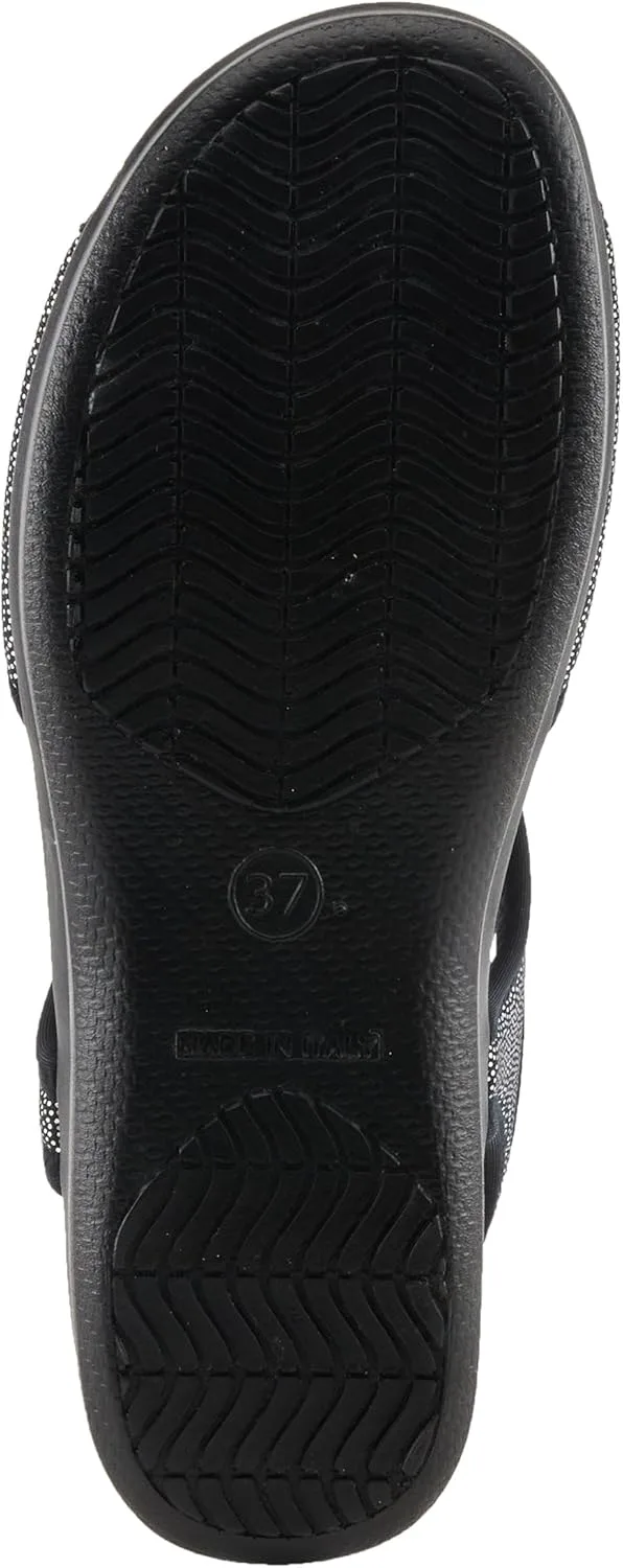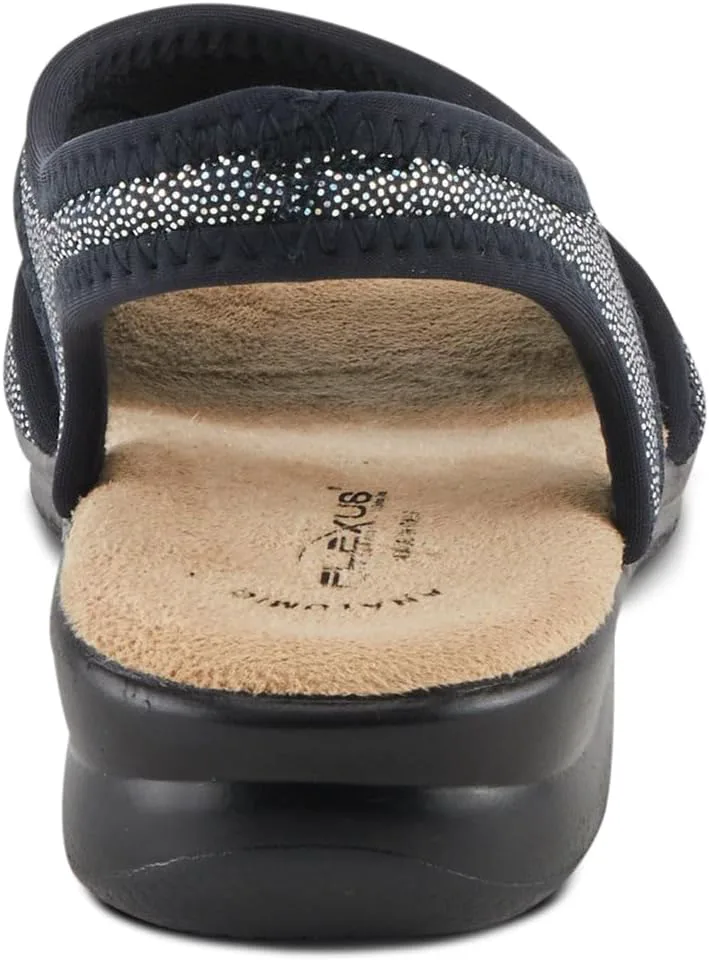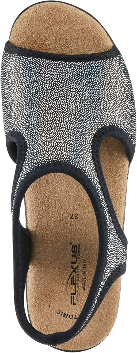 Flexus Style: Nyaman Italian made, easy-to-slip-on lycra sandal with stitch detail. Heel Height (approximately): 1 1/2" Features: -Soft and stretchy lycra upper -Lycra lining. -Microfiber padded anatomic insole. -Polyurethane, slip-proof, anti-shock, flexible outsole. -Made in Italy.