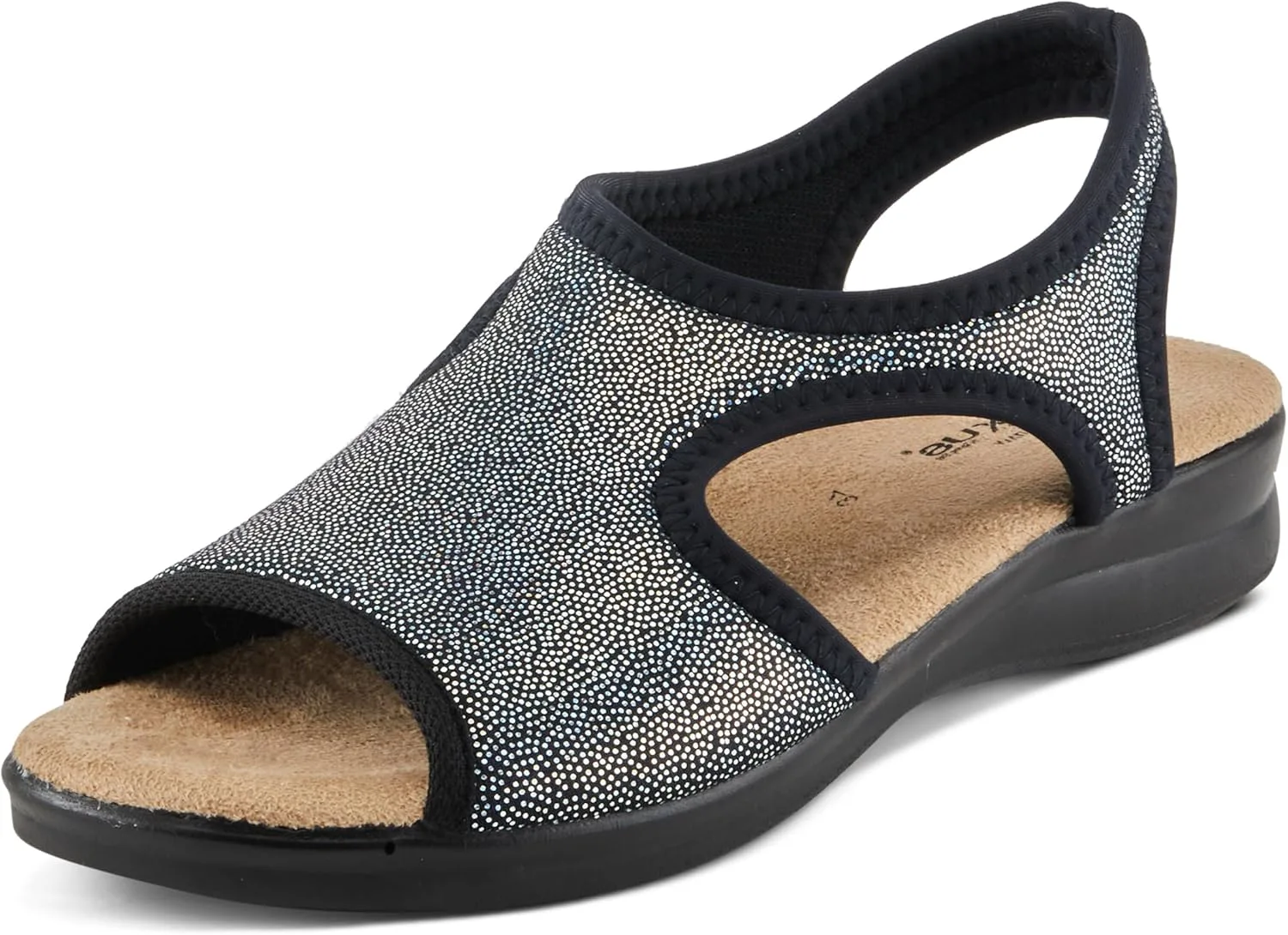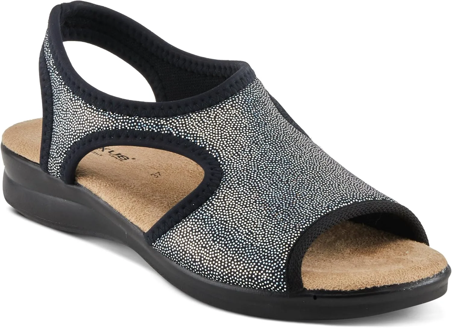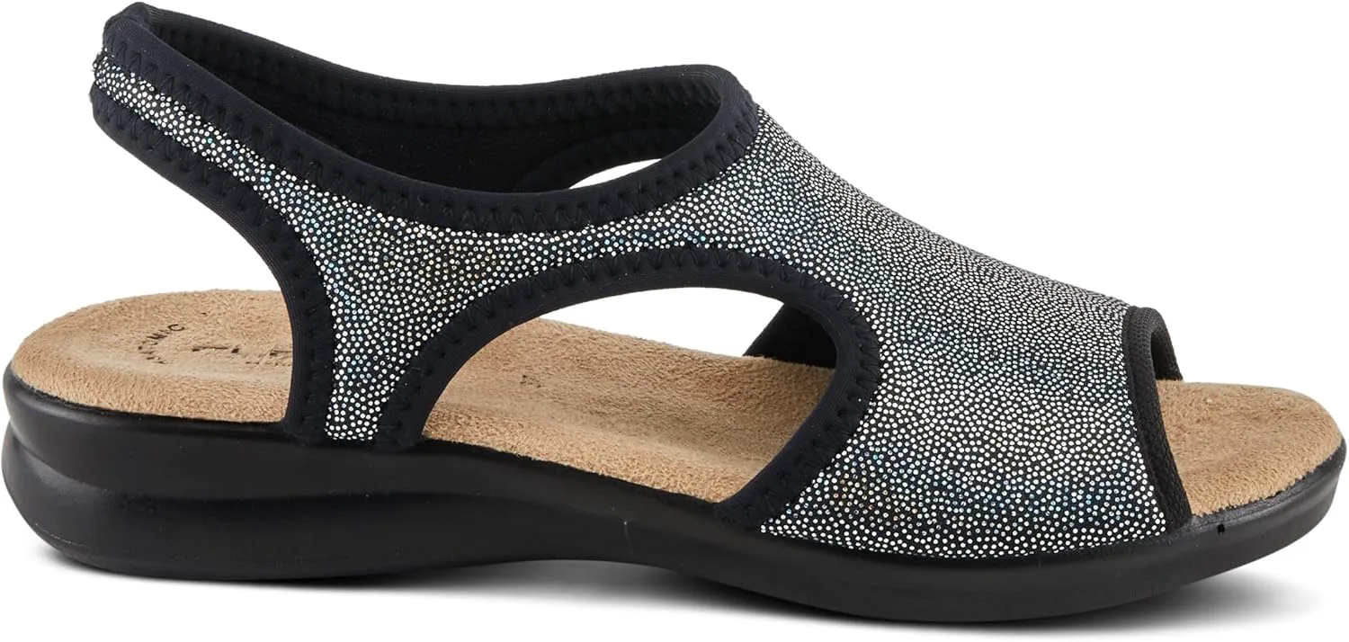 Flexus Style: Nyaman Italian made, easy-to-slip-on lycra sandal with stitch detail. Heel Height (approximately): 1 1/2" Features: -Soft and stretchy lycra upper -Lycra lining. -Microfiber padded anatomic insole. -Polyurethane, slip-proof, anti-shock, flexible outsole. -Made in Italy.