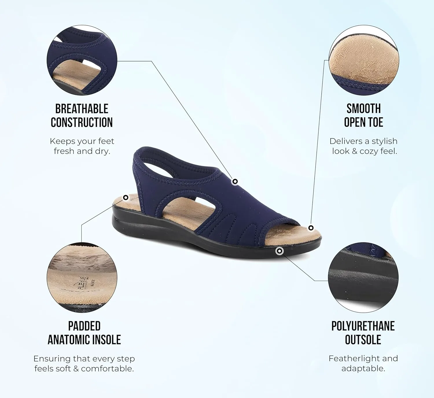 Memory Foam Insole: These flat sandals for women feature a plush memory foam insole that provides exceptional cushioning with every step.