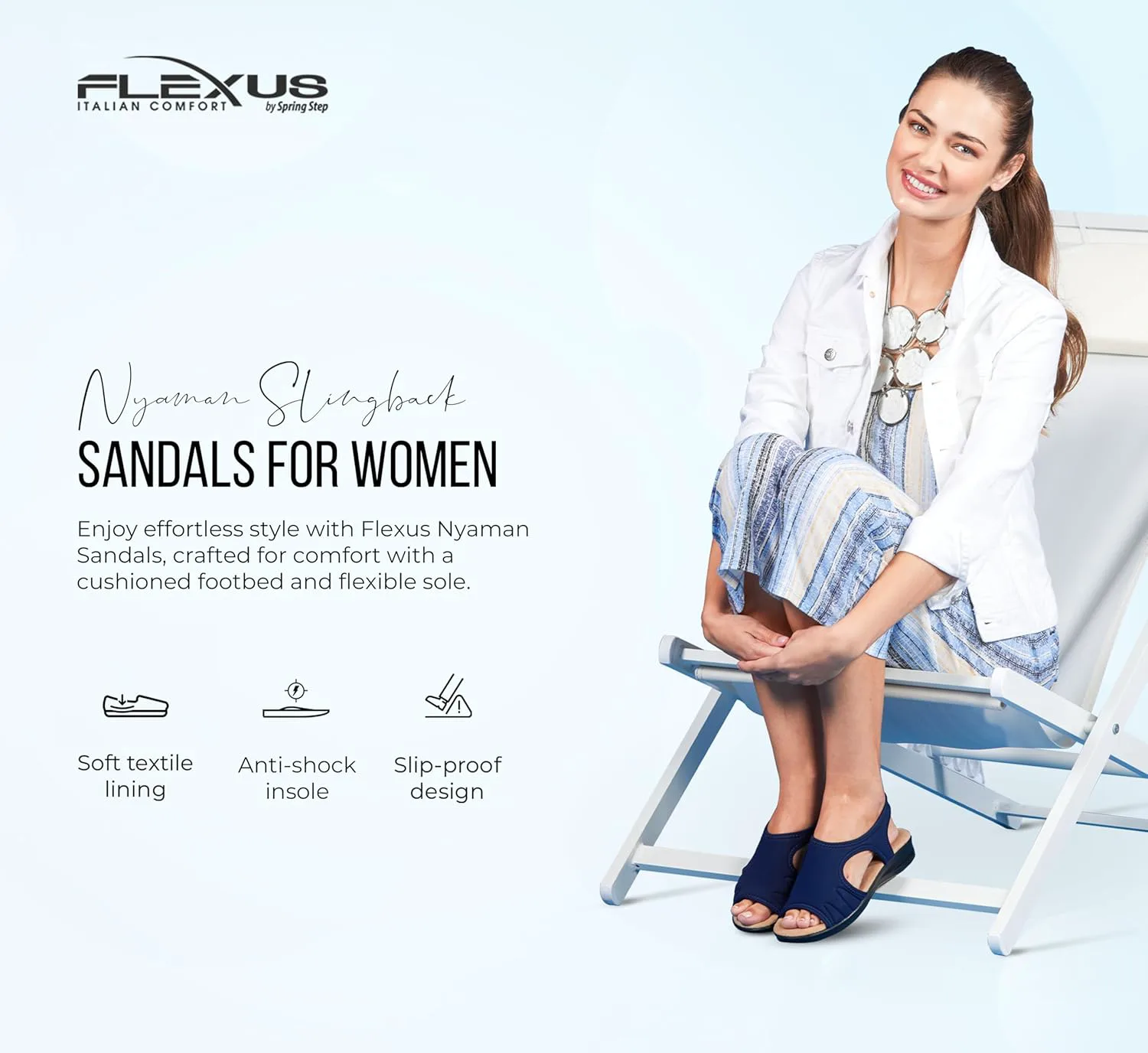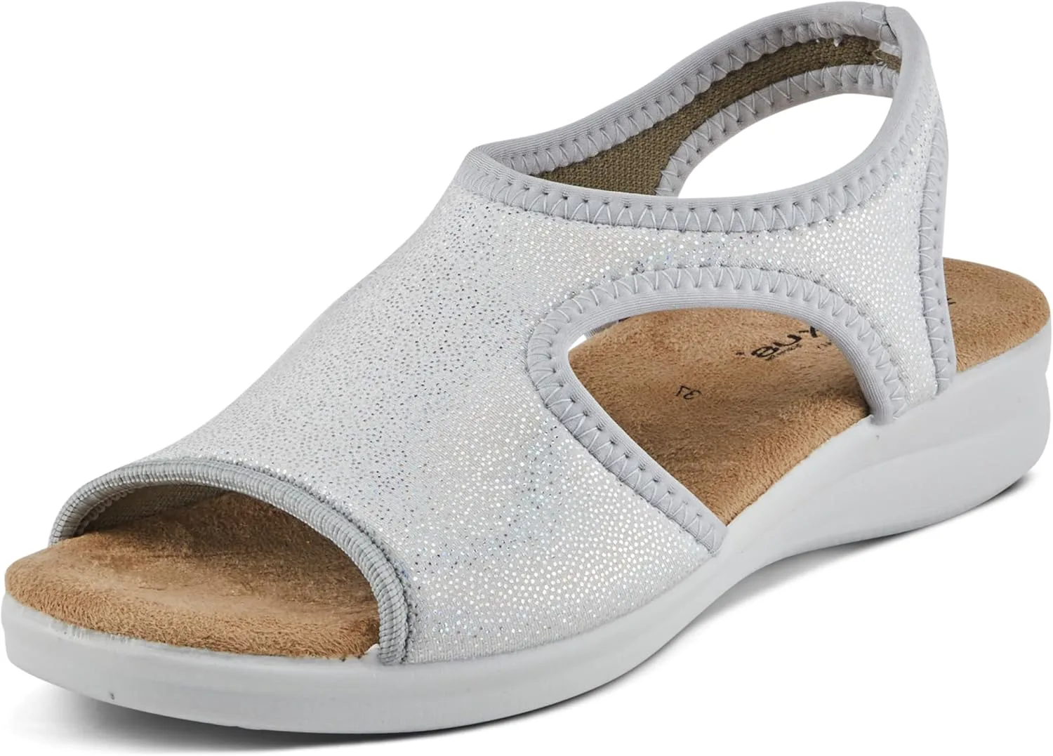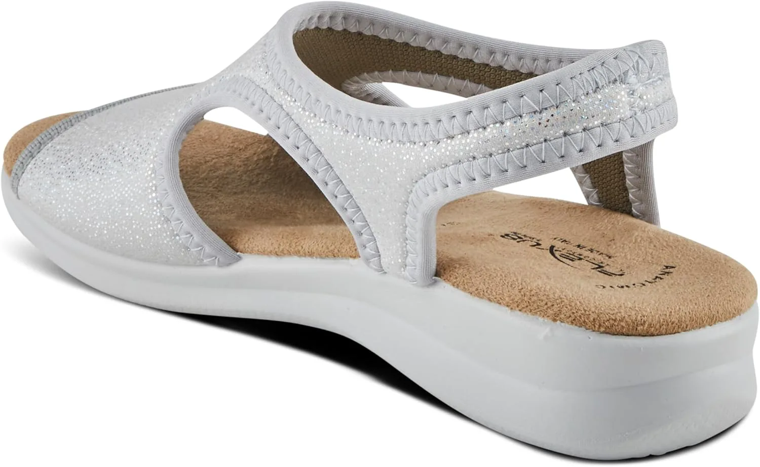 Flexus Style: Nyaman Italian made, easy-to-slip-on lycra sandal with stitch detail. Heel Height (approximately): 1 1/2" Features: -Soft and stretchy lycra upper -Lycra lining. -Microfiber padded anatomic insole. -Polyurethane, slip-proof, anti-shock, flexible outsole. -Made in Italy.