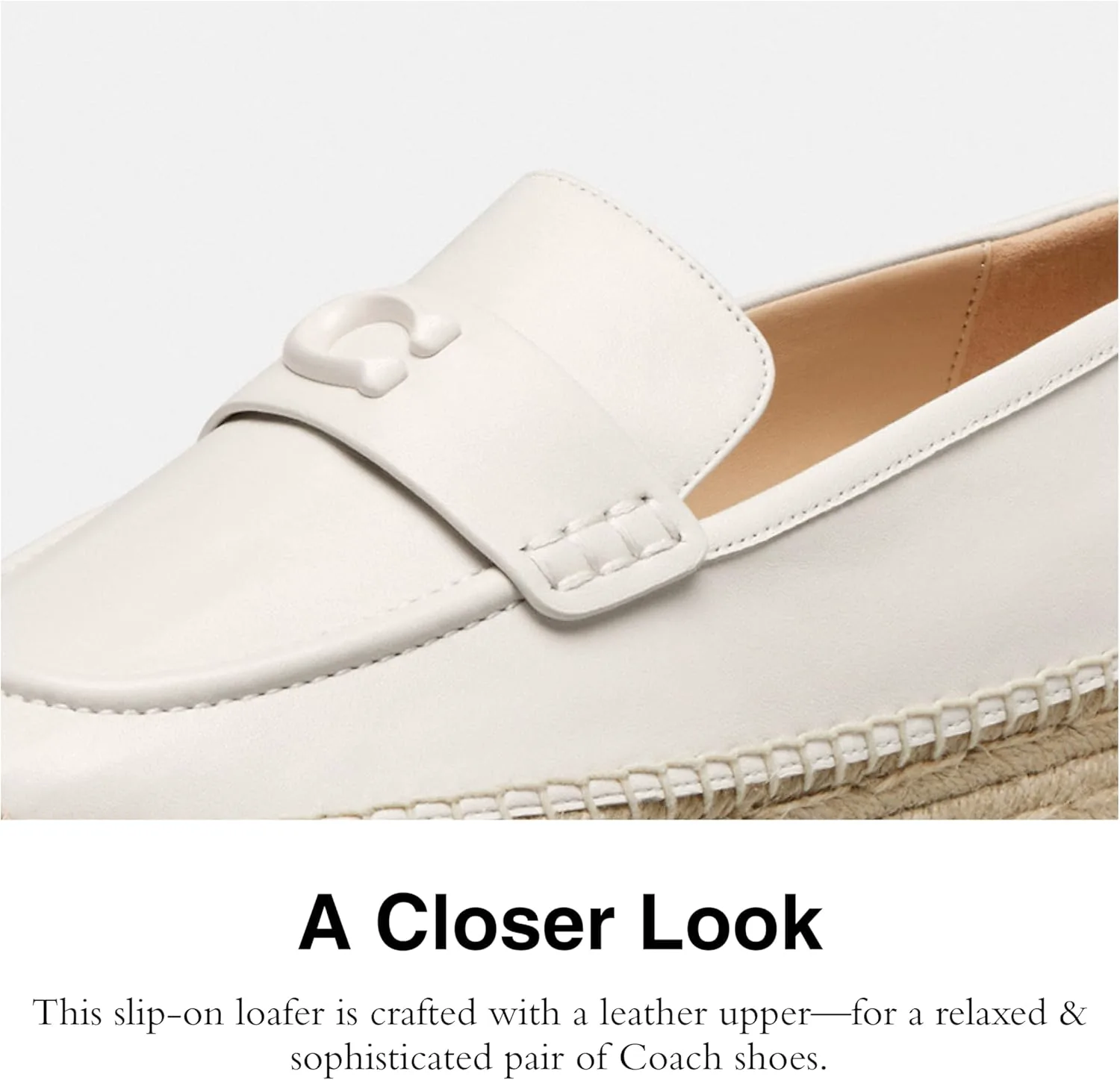 Свежий взгляд на непринужденный стиль: наши эспадрильи Camilla - идеальные лоферы для сочетания с повседневной весенней одеждой. Эти женские лоферы без шнурков выполнены с верхом из кожи - для создания расслабленной и элегантной пары обуви Coach.