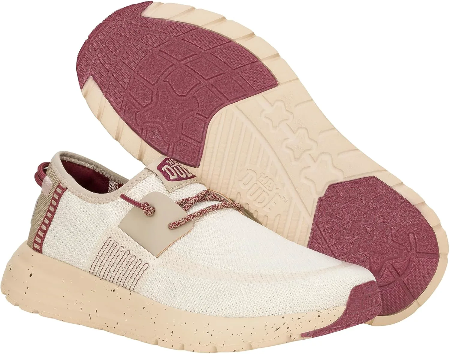 Восхищайтесь передовым стилем, надевая лоферы Hey Dude Sirocco M Hype Taupe/Mahogany. Обувь с округлым носком выполнена из текстильного материала с задними петлями и фиксированными эластичными шнурками для удобного надевания. Подкладка из хлопка. Съемная стелька с эффектом памяти обеспечивает максимальный комфорт и снижает потливость и запахи. Технология Flex & Fold поддерживает здоровье стоп благодаря уникальной форме, обеспечивая полную свободу движений. Легкая подошва из EVA.