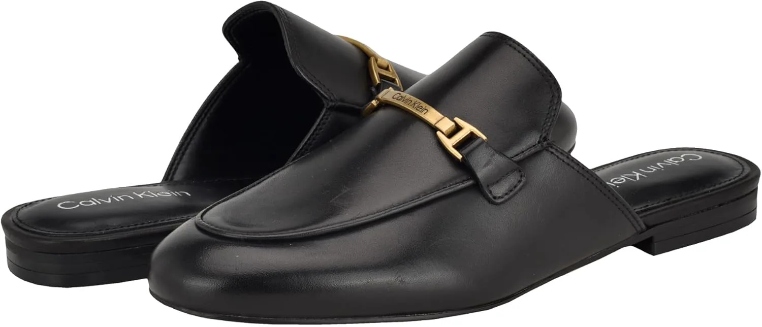 Наденьте повседневные лоферы Calvin Klein Sidoll. Эти лоферы имеют заостренный носок миндальной формы, открытую пятку и золотую фурнитуру на верхней части. Идеальная базовая вещь для гардероба!