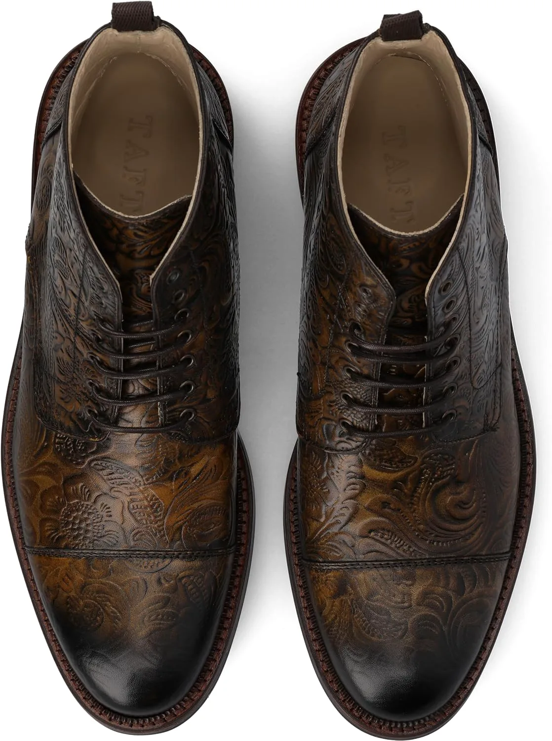 БОТИНОК ROME В MORADO VIEJO: Ботинок Rome в районе morado viejo от Taft привлекает внимание своим универсальным стилем и уникальным стилем. Украшенные вручную отполированными цветочными тиснениями и темным оттенком бычьей крови, эти ботинки - настоящее произведение искусства, обеспечивающее эффектный и привлекающий внимание вид. Мягкие стельки гарантируют непревзойденный комфорт и качество, что видно по надеванию их самостоятельно. МУЖСКИЕ БОТИНКИ РАЗМЕРОВ 7-14: Найдите свою посадку в TAFT. В нашем ассортименте мужских ботинок от 7 до 14 мы предлагаем размеры как для маленьких, так и для очень больших стоп. Все измерения были приблизительными и сделаны с использованием размера 9. Обратите внимание, что размеры могут немного отличаться в зависимости от размера. УНИКАЛЬНЫЙ ДИЗАЙН БОТИНОК НА ШНУРОВКЕ: Вы никогда не найдете другого такого ботинка. Украшенный шнуровкой и натуральной кожей, этот стиль производит впечатление. ВЫСОКОКАЧЕСТВЕННЫЕ МУЖСКИЕ БОТИНКИ: В Taft мы всегда используем премиальные материалы, чтобы вы получили максимальную отдачу и качества. Сделано из настоящей кожи в сочетании с мягкой стелькой, можете быть уверены эти ботинки прослужат долго. TAFT SHOES: Taft стремится производить высококачественные ботинки и обувь для смелых. С уникальными деталями, роскошными материалами и мастерским мастерством, эта обувь создана, чтобы выделяться год за годом.