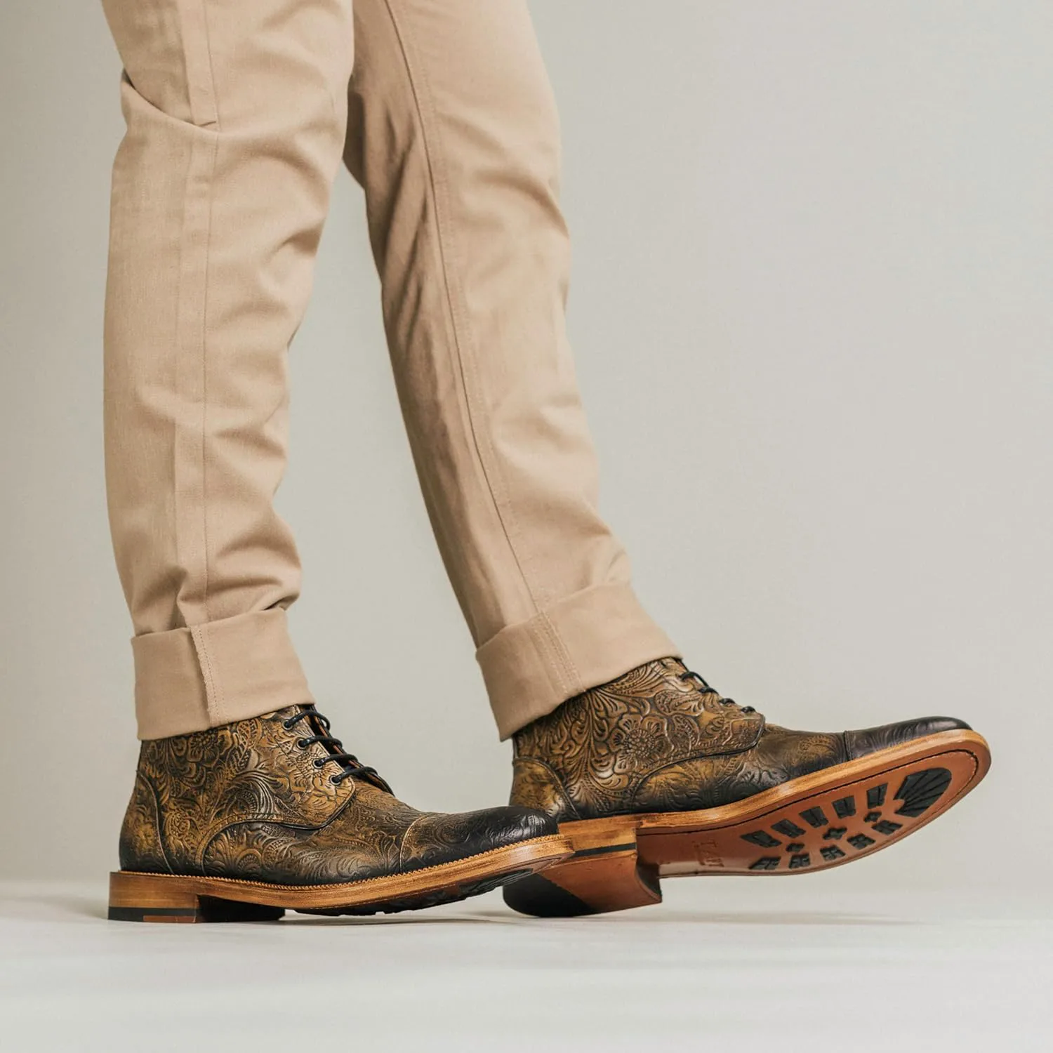 Наши ботинки Rome Boot в цвете Oro Viejo позволят вам выглядеть стильно благодаря натуральной коже, заостренному носку, цветочному рисунку и кожаной подошве. Шнуровка и мягкая стелька придадут вам профессиональный вид, чтобы плавно перейти с работы на любое официальное мероприятие или даже на приятный ужин, при этом ваши ноги будут чувствовать себя более комфортно, чем когда-либо.