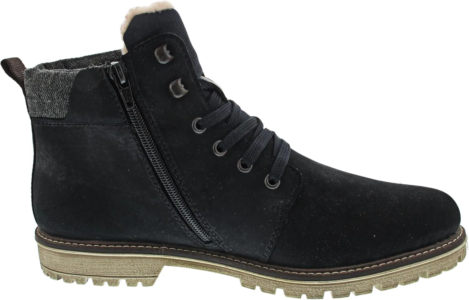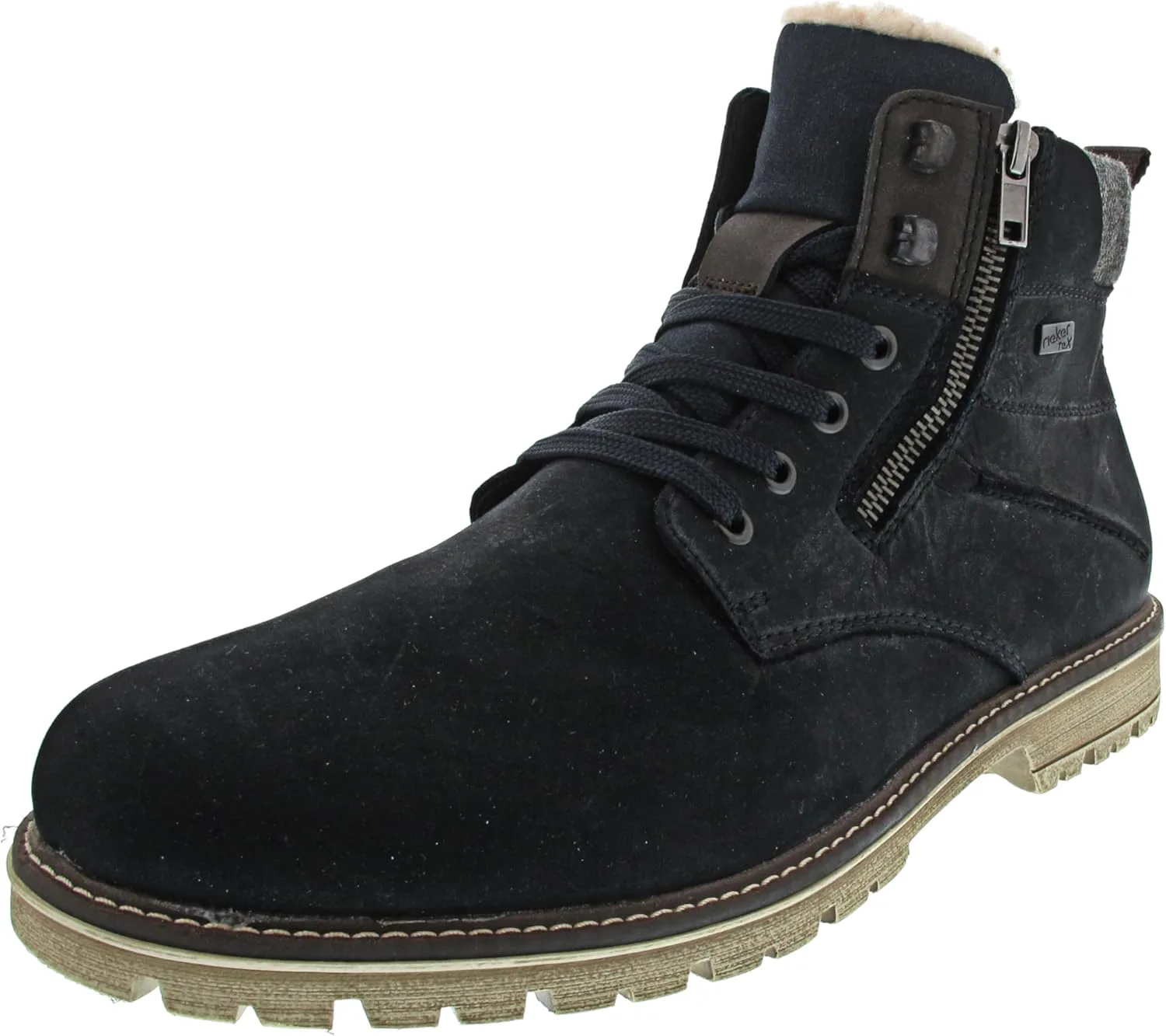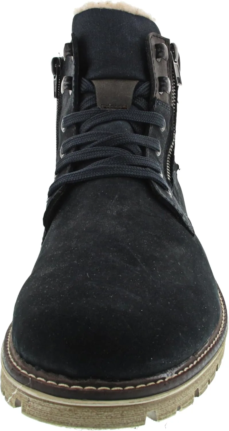 Модные мужские ботинки Rieker! С этими темно-синими замшевыми ботинками Rieker на шнуровке вы будете выглядеть стильно и непринужденно в любой ситуации. Умное сочетание шнуровки и молнии обеспечивает идеальную посадку и оптимальную фиксацию. Нескользящая подошва гарантирует хорошее сцепление, а особенно мягкая стелька обеспечивает дополнительный комфорт. Модель обеспечивает стопе дополнительную свободу движения благодаря комфортной колодке. Особенно уютная теплая подкладка сохраняет ноги в тепле весь день, а технология RiekerTEX защищает от влаги. Давайте покорим холодные дни!