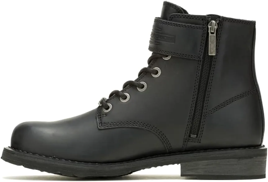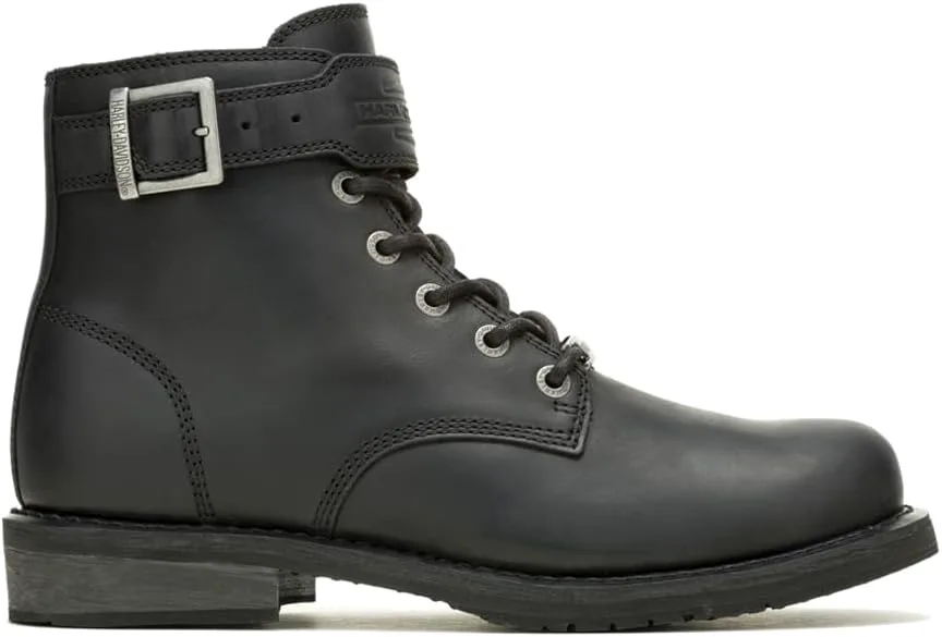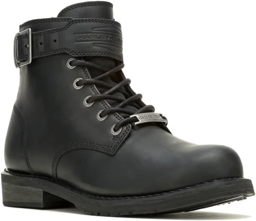 Ботинки, изготовленные с точностью и рассчитанные на долгий срок службы. Мужские рабочие ботинки Vntgmoto с классическим простым носком, шнуровкой и верхней пряжкой. Эти богатые кожаные модели привлекут внимание благодаря тисненому логотипу Harley-Davidson Old English в тон.