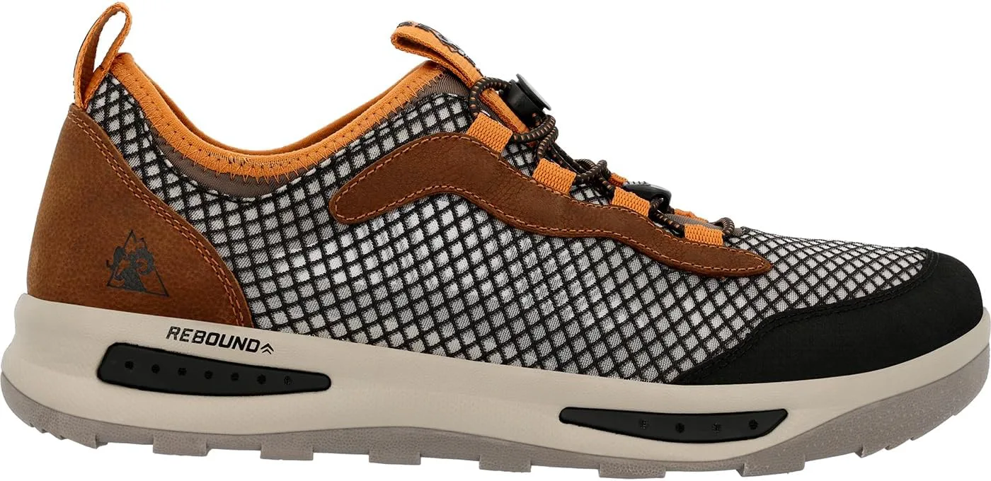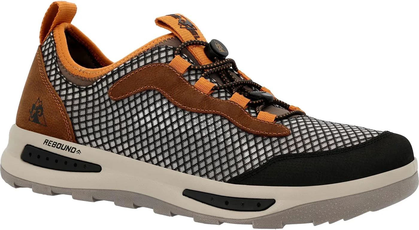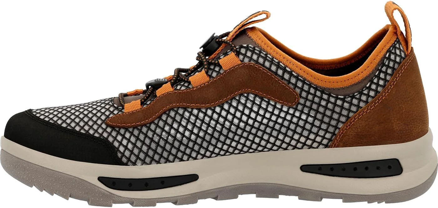 На протяжении нескольких дней у воды обувь Rocky NOWAKE оснащена множеством функций, которые позволяют вам дольше заниматься любимыми видами активности. От каякинга и паддлбординга до рыбалки и катания на лодке - эти полностью сливающиеся туфли обеспечивают комфорт как в воде, так и вне ее. Верх из переработанной рыболовной сети и перфорированная сливающаяся стелька позволяют воде свободно проходить, не скапливаясь, что сокращает время высыхания. Дополнительное сцепление в мокрых условиях обеспечивается не оставляющей следов, противоскользящей подошвой с сливающейся средней подошвой из EVA, которая вытесняет воду с каждым шагом. Такие функции, как интегрированная конструкция из неопренового носка и фиксирующие шнурки с замком и зажимом, обеспечивают комфорт на весь день и надежную поддержку.
