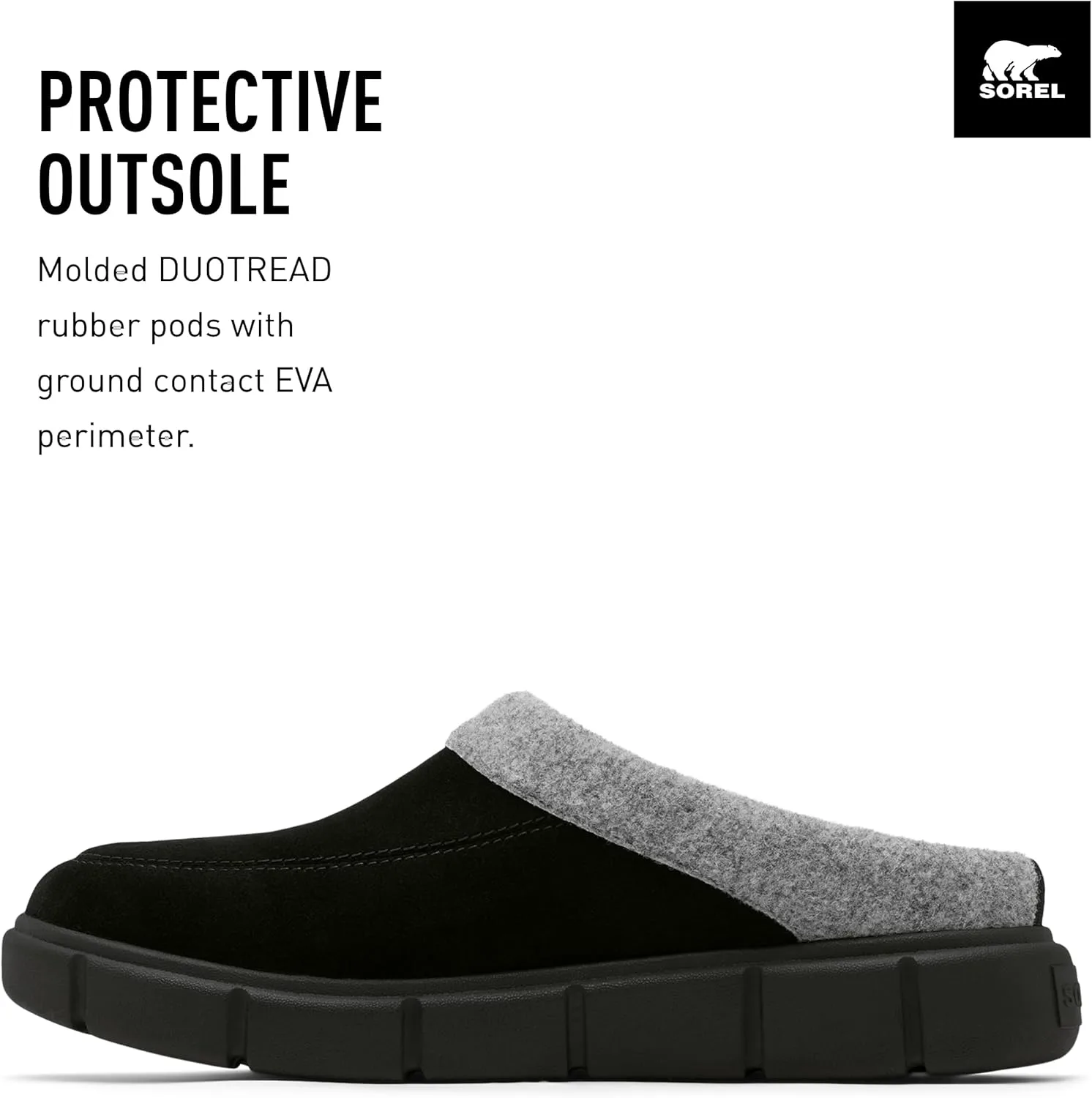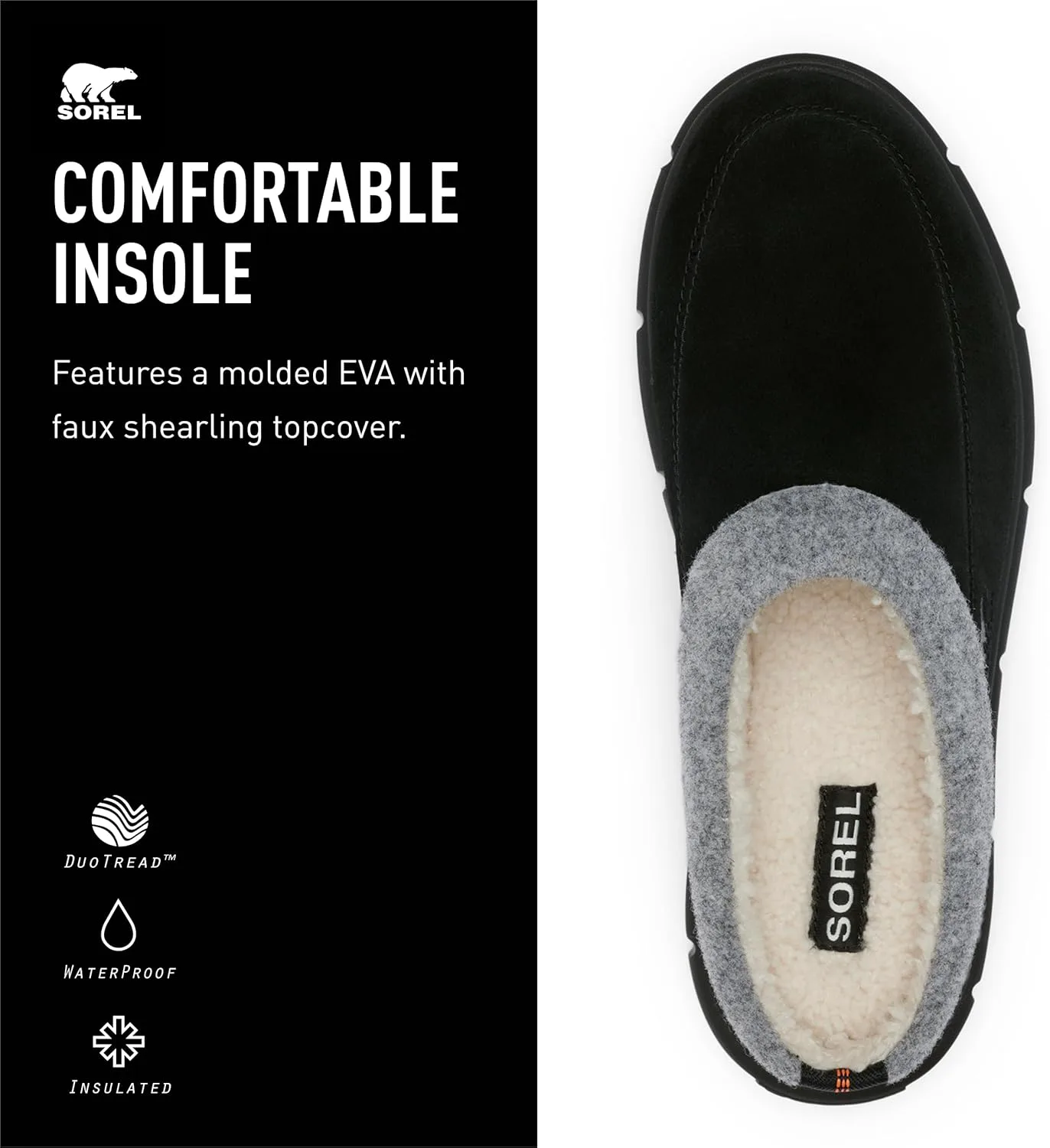 Формованная EVA. Замша с отделкой из фетра. Подкладка из искусственной овчины. Формованная EVA с верхним покрытием из искусственной овчины. Формованные резиновые вставки DUOTREAD с EVA-периметром, контактирующим с землей. Замша с отделкой из фетра. Подкладка из искусственной овчины. Формованная EVA. Формованные резиновые вставки DUOTREAD с EVA-периметром, контактирующим с землей.