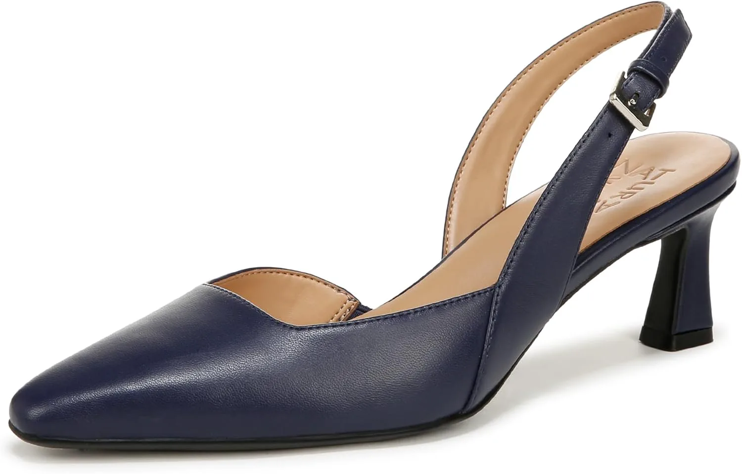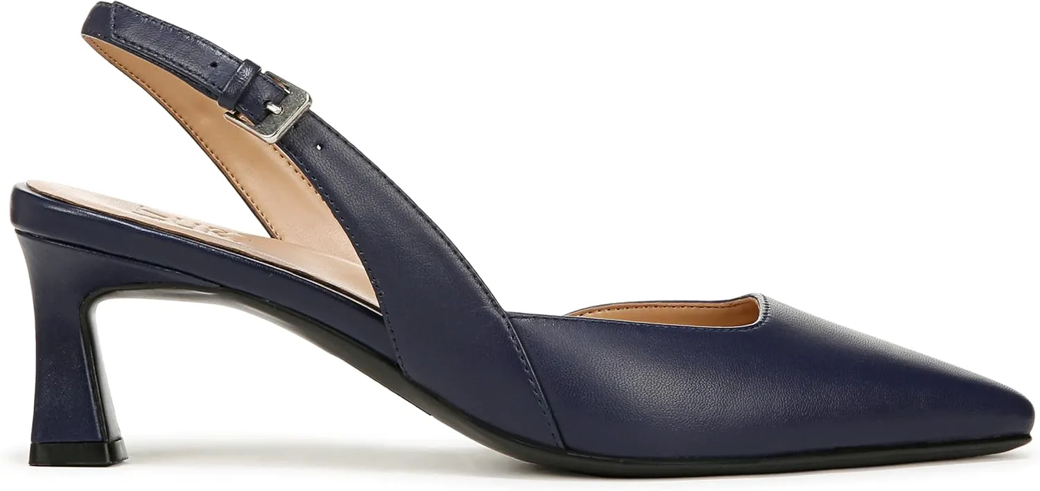 Элегантные женские туфли на каблуке с современной ремешковой застежкой на пятке. Металлизированная кожа, кожа или искусственные материалы верха, закрытый заостренный носок, низкий комфортный каблук 2 1/4 дюйма. Женские туфли с регулируемой пряжкой и нескользящей подошвой доступны в среднем и широком размере. Технология Contour+ Comfort обеспечивает премиальную посадку и комфорт в течение всего дня. Разработаны с использованием некоторых экологически предпочтительных материалов. Осознанная упаковка: 100% наших коробок для обуви изготовлены из 80% переработанной бумаги + чернила на основе сои.