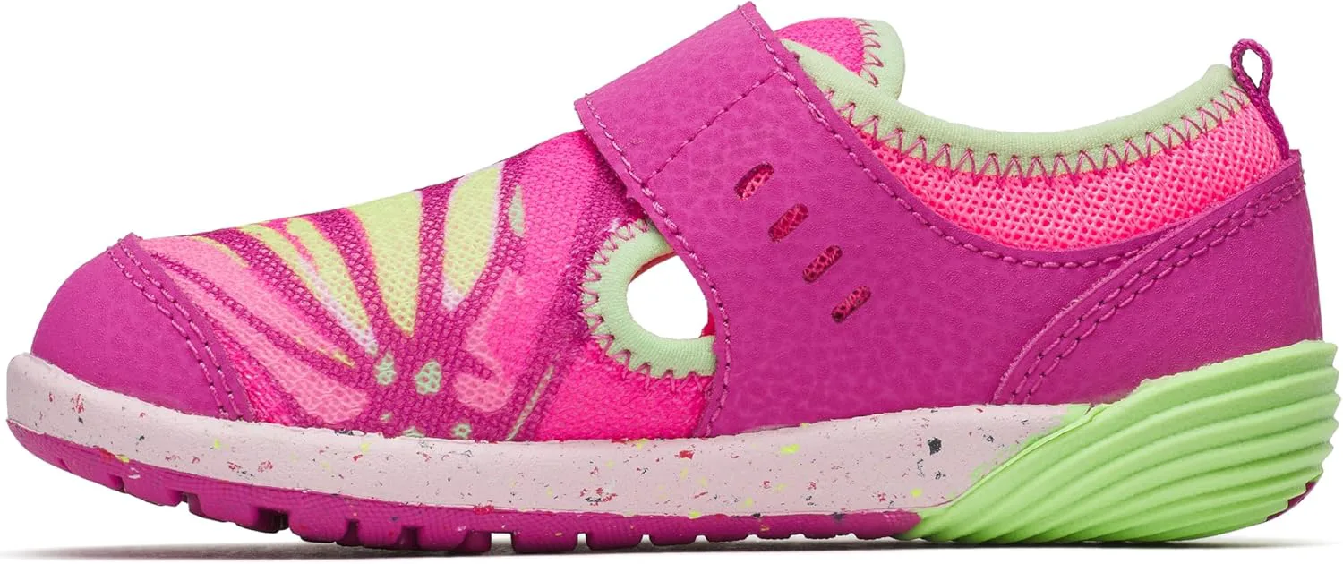 Закругленный, особенно широкий носок обеспечивает пространство для пальцев без сжатия, позволяя им двигаться естественно, способствуя правильному развитию стопы и улучшенной проприоцепции - способности ощущать положение своего тела в пространстве - во время ношения обуви. Подошва с закругленным каблуком способствует здоровому развитию естественной походки. Полностью закругленный контур, имитирующий естественную форму детской стопы, позволяет стопе правильно развиваться и обеспечивает комфортную посадку. Отсутствие перепада высоты от пятки до носка способствует естественному контакту с землей - аналогично ходьбе босиком - что помогает новым ходокам уверенно стоять на ногах, улучшать ловкость и формировать естественную походку. Легкая, прочная, не оставляющая следов резиновая подошва с превосходным сцеплением для улучшенного контакта как на мокрых, так и на сухих поверхностях.