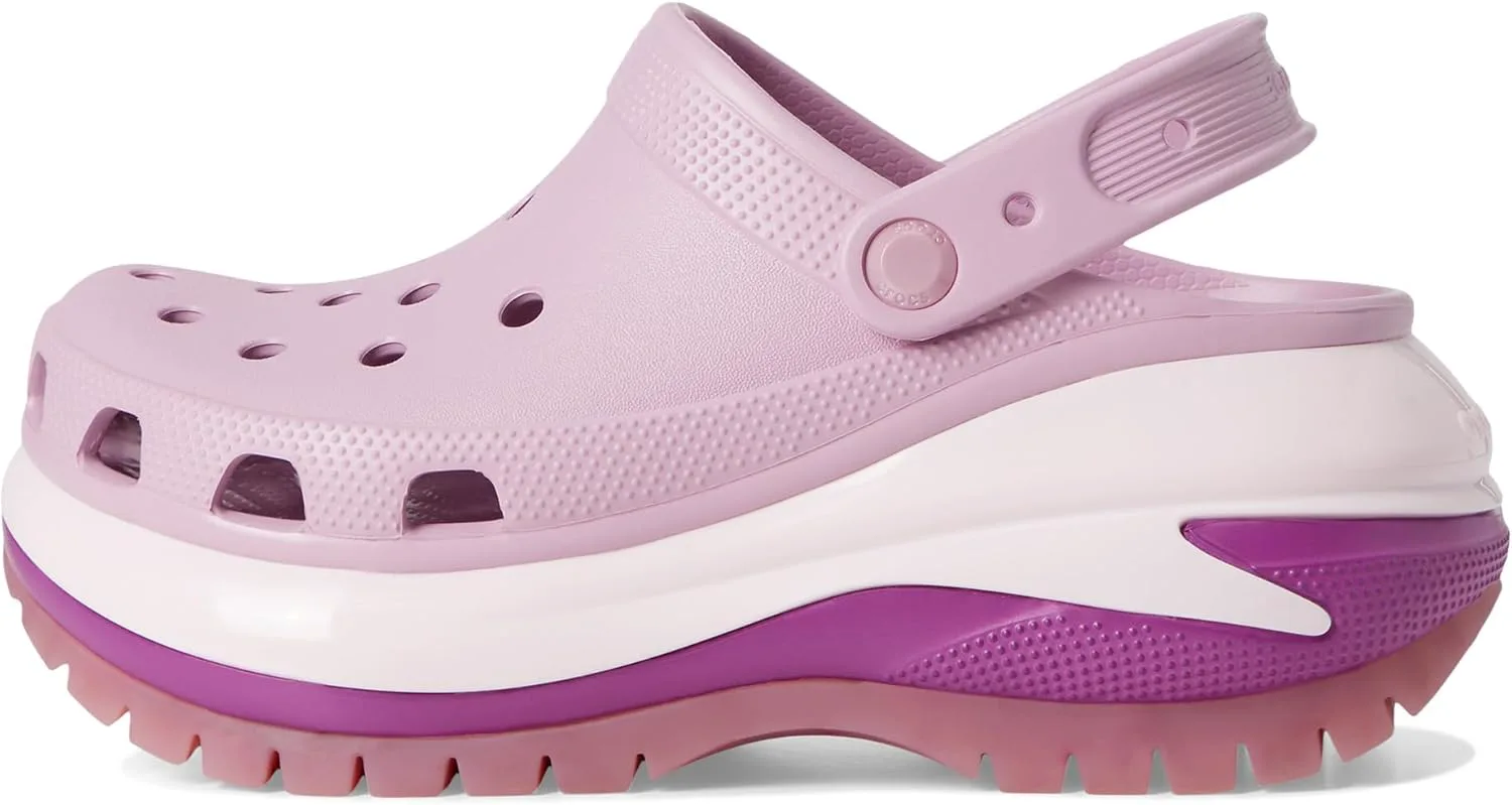 Классические сабо получают по-настоящему эффектный образ. Представляем Classic Mega Crush Clog с улучшенной резиновой подошвой, обновленными деталями по краю подошвы, отражающим верхом и платформой, которая способна поднять любой образ на новый уровень. Еще лучше, задний ремешок и верхняя часть созданы для персонализации с помощью украшений Jibbitz. Вы готовы к своей новой любви?