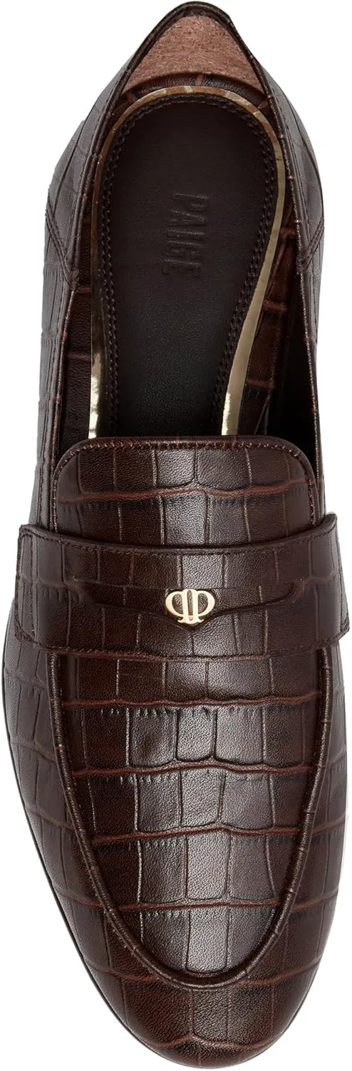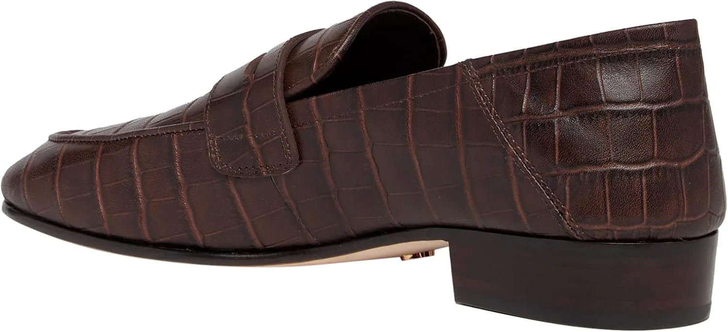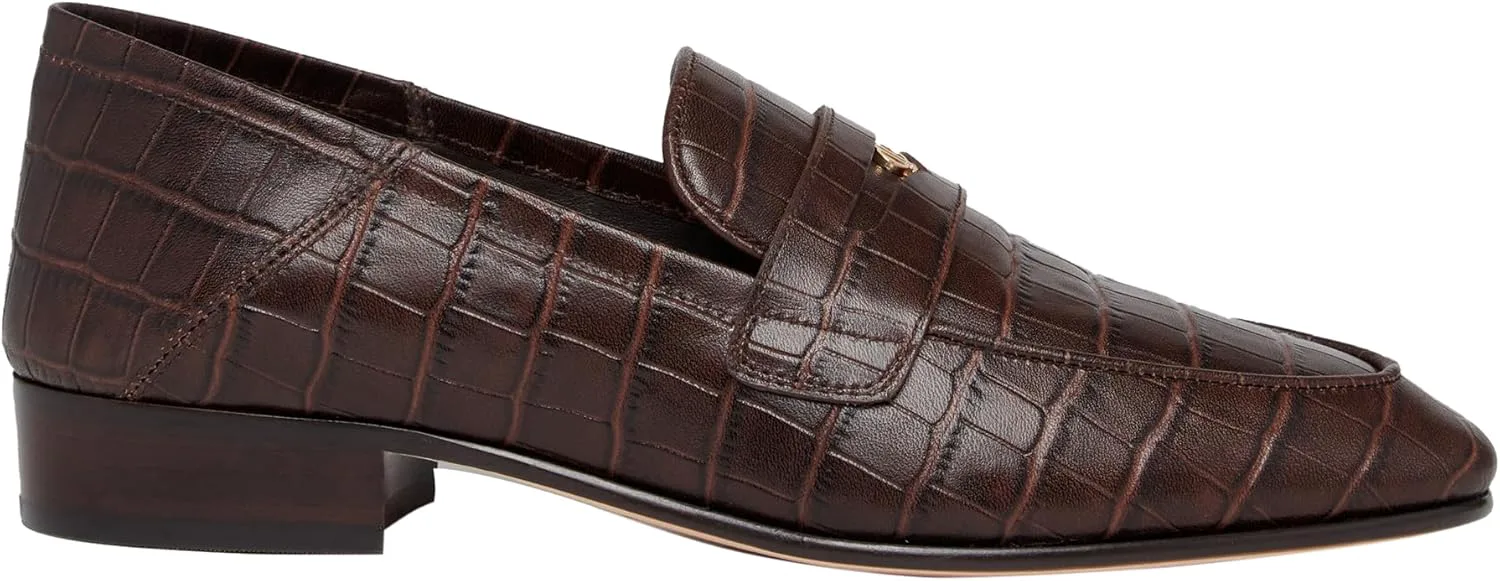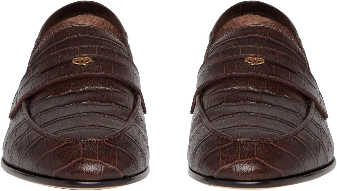 Macall - это наша улучшенная версия пенни-лофера. Эта стильная модель выполнена из кожи шоколадного цвета с тиснением под крокодила, с детализированной лентой пенни-лофера спереди и формой носка в виде миндаля с классическим швом по контуру носка. Macall оснащены нашей фирменной металлической фурнитурой светлого золота в центре и имеют трансформируемый, невыстеленный задник, который можно опустить и носить как мюли или поднять и носить как классические лоферы.