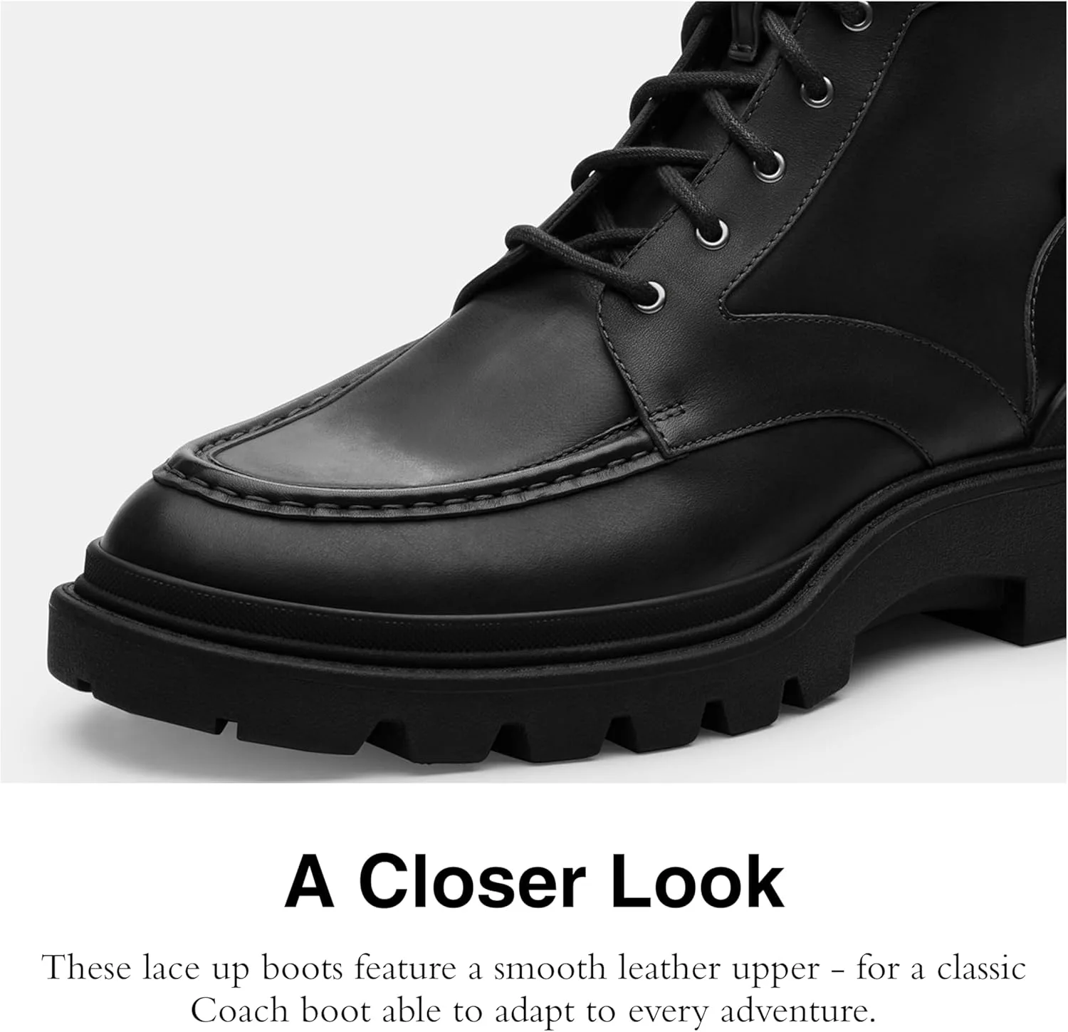 Наши мужские ботинки Connor - прочные и стильные, представляющие собой усовершенствованную, но крайне надежную версию армейских ботинок - носите их как для торжественных случаев, так и каждый день. Эти мужские ботинки на шнуровке имеют гладкий кожаный верх - классические мужские ботинки Coach, готовые к любым приключениям.