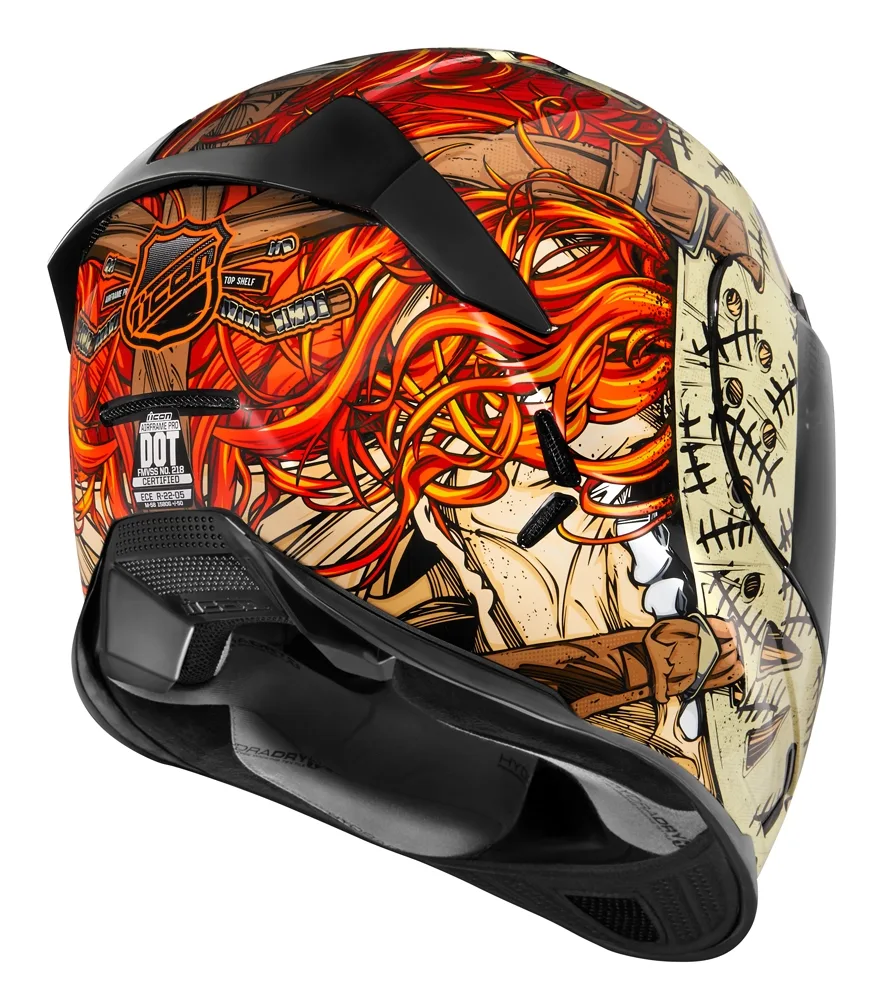 Значительно уменьшенный профиль корпуса, состоящий из углеродного волокна аэрокосмического класса (FRP), имеет признанный сертификат ECE. Точные методы сборки способствуют снижению массы, позволяя Icon создать исключительно легкий и несравненно оснащенный шлем. Внутри традиционный вкладыш, состоящий из трех частей, был модернизирован до вкладыша из пяти частей, что обеспечивает большее количество комбинаций посадок для каждой уникальной формы головы. Компоненты набивки короны, боковых, носовых и задних частей позволяют использовать 27 комбинаций установки в одном корпусе, что вдвое больше, чем у конкурентов Icon Airframe.
