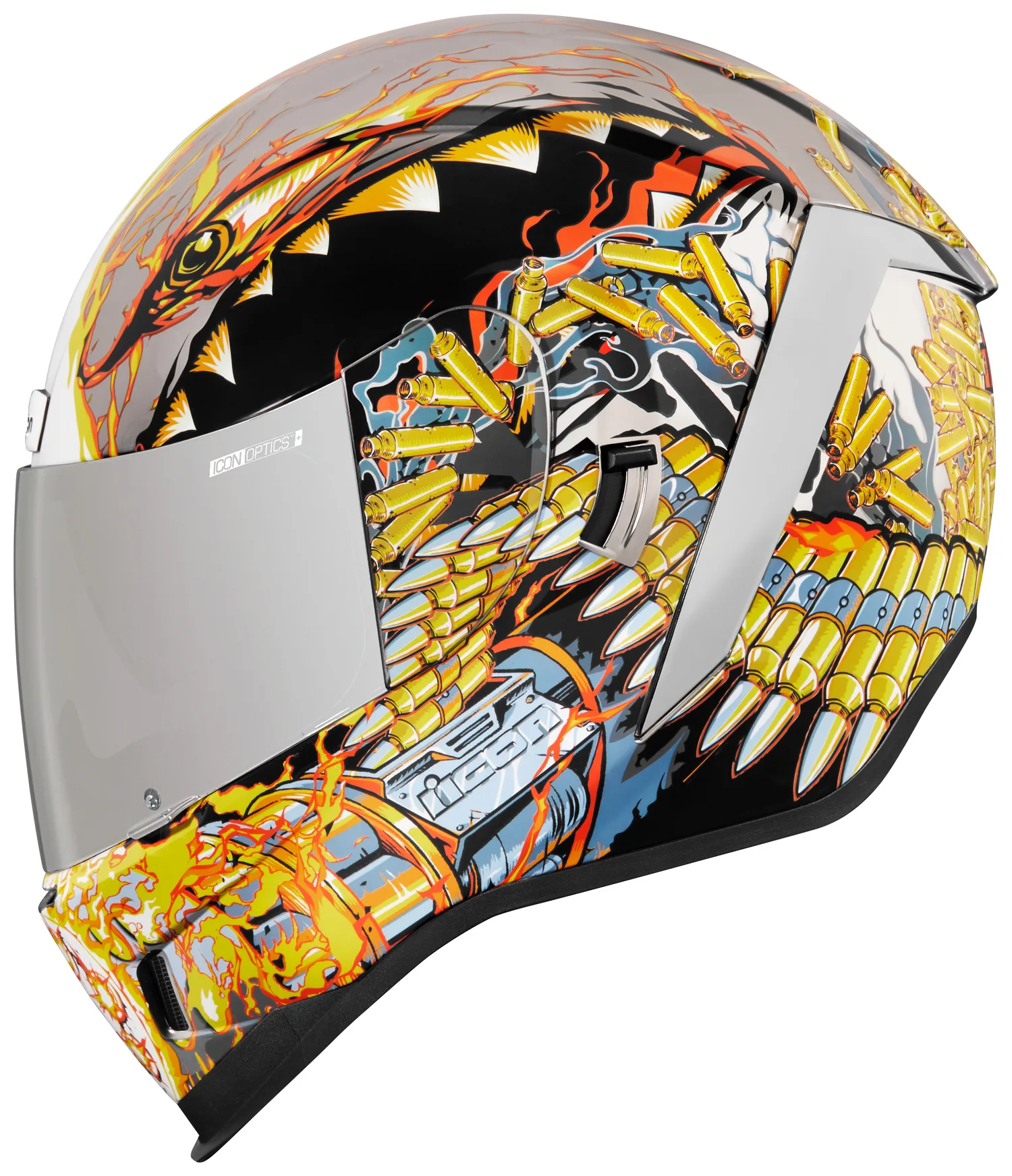В комплект входит серебристый RST и прозрачный незапотевающий лицевой щиток Icon Optics