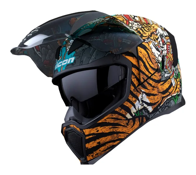 Представьте себе: вверху палит безжалостное солнце, а внизу земля катится под вашими шинами. Это идеальный баланс, инь и янь вашего путешествия. Как и в древней даосской философии, шлем Airflite Mips Edo отражает эту гармонию, где тигр олицетворяет инь, а дракон означает ян. Вы находитесь на перекрестке этих неизбежных сил, но не бойтесь, ведь шлем Airflite EDO - ваш хранитель. Он оснащен системой защиты мозга Mips, сертификацией ECE 22.06, защитой от запотевания Fliteshield и внутренней защитой от темного дыма.