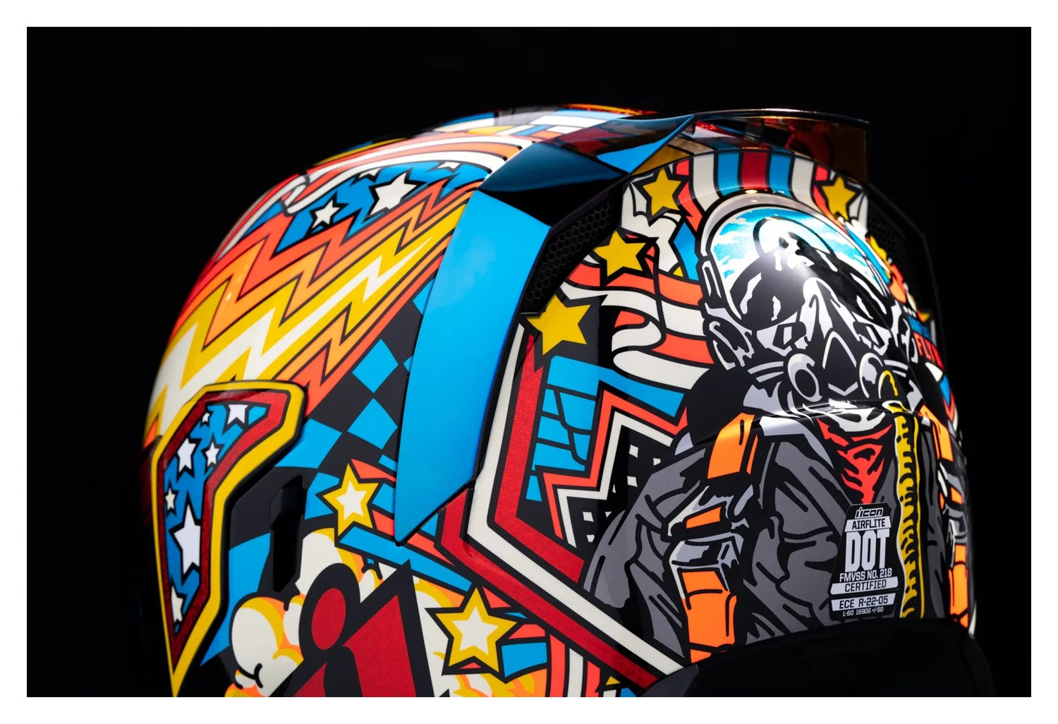 Открой для себя своего внутреннего авиатора с помощью шлема Icon Airflite Flyboy, в котором мечтает стать пилотом-истребителем. Дайте волю своей страсти к приключениям благодаря художественному дизайну этого шлема, передающему дух мечтаний о скорости 1 Маха. Оснащенный Fog-Free Fliteshield и внутренним раскрывающимся Fog-Free Forceshield RST Blue Fog-Free, вы можете парить в небе или путешествовать по дорогам днем ​​и ночью. Сертификация EC E22.06 станет вашим надежным помощником, безопасность и стиль станут вашими вторыми пилотами.