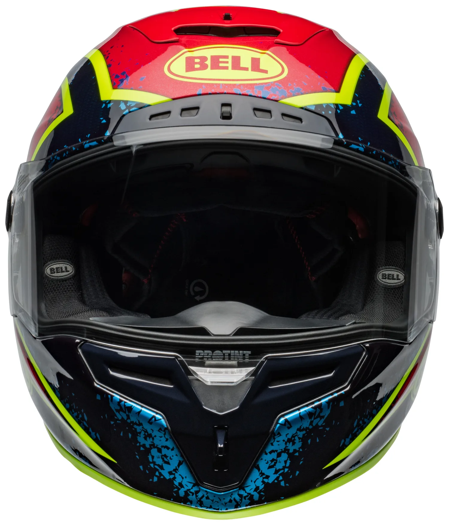 Шлем Bell Race Star Flex был обновлен для повышения комфорта. Race Star Flex на 10 % легче своего родственника Race Star и оснащен карманами для динамиков, а также новыми накладками на щеках тройной плотности для еще большего комфорта. Конструкция Race Star, созданная с использованием новейших технологий углеродного волокна и разработанная в ходе обширных испытаний в аэродинамической трубе и на трассе, включает в себя сверхлегкий карбоновый корпус 3K, эргономику Raceview для непревзойденной видимости и трехслойный вкладыш Flex Impact для защиты от ударов медленной, средней и высокой энергии.