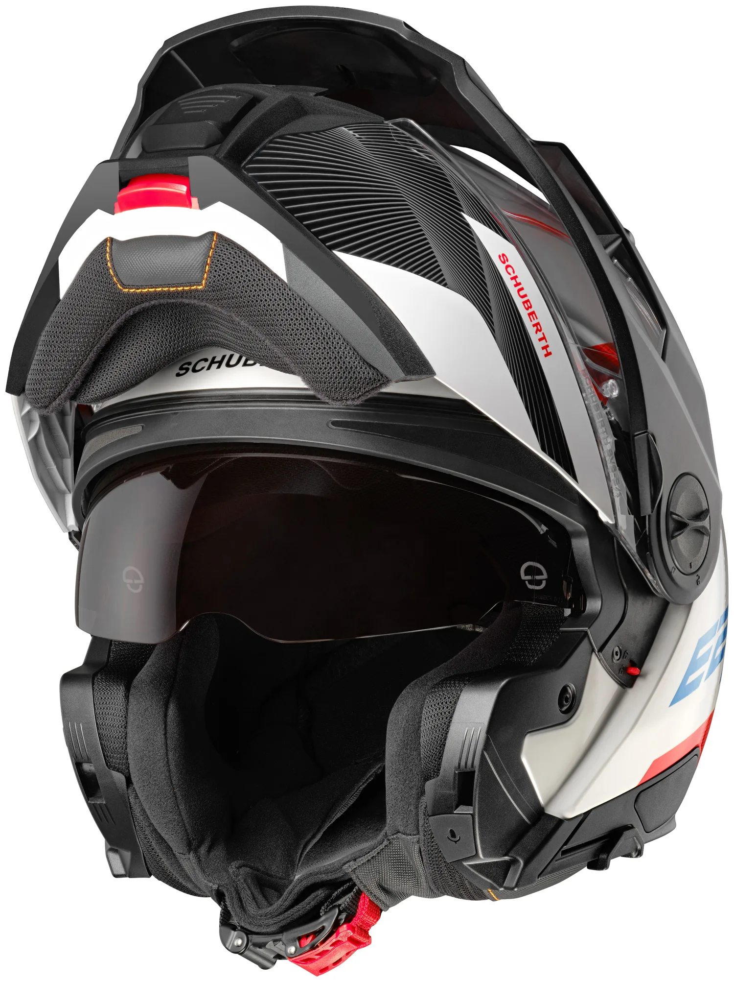 Компания Schuberth всегда стремилась к высочайшему комфорту и первоклассным функциям безопасности в своих шлемах, и приключенческий шлем E2 не является исключением. Внешняя оболочка E2 состоит из стекловолокна, обработанного прямой обработкой (Direct Fiber Processing) в сочетании со специальной смолой, которая сжимается в вакууме под высоким давлением, образуя исключительно прочную, но уникально легкую оболочку шлема. Регулируемый съемный козырек был разработан для минимизации ударов и имеет функцию памяти, которая сохраняет точное положение козырька даже после открытия и закрытия перекладины подбородка.