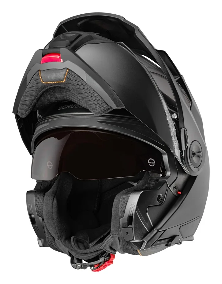 Компания Schuberth всегда стремилась к высочайшему комфорту и первоклассным функциям безопасности в своих шлемах, и приключенческий шлем E2 не является исключением. Внешняя оболочка E2 состоит из стекловолокна, обработанного прямой обработкой (Direct Fiber Processing) в сочетании со специальной смолой, которая сжимается в вакууме под высоким давлением, образуя исключительно прочную, но уникально легкую оболочку шлема. Регулируемый съемный козырек был разработан для минимизации ударов и имеет функцию памяти, которая сохраняет точное положение козырька даже после открытия и закрытия перекладины подбородка.