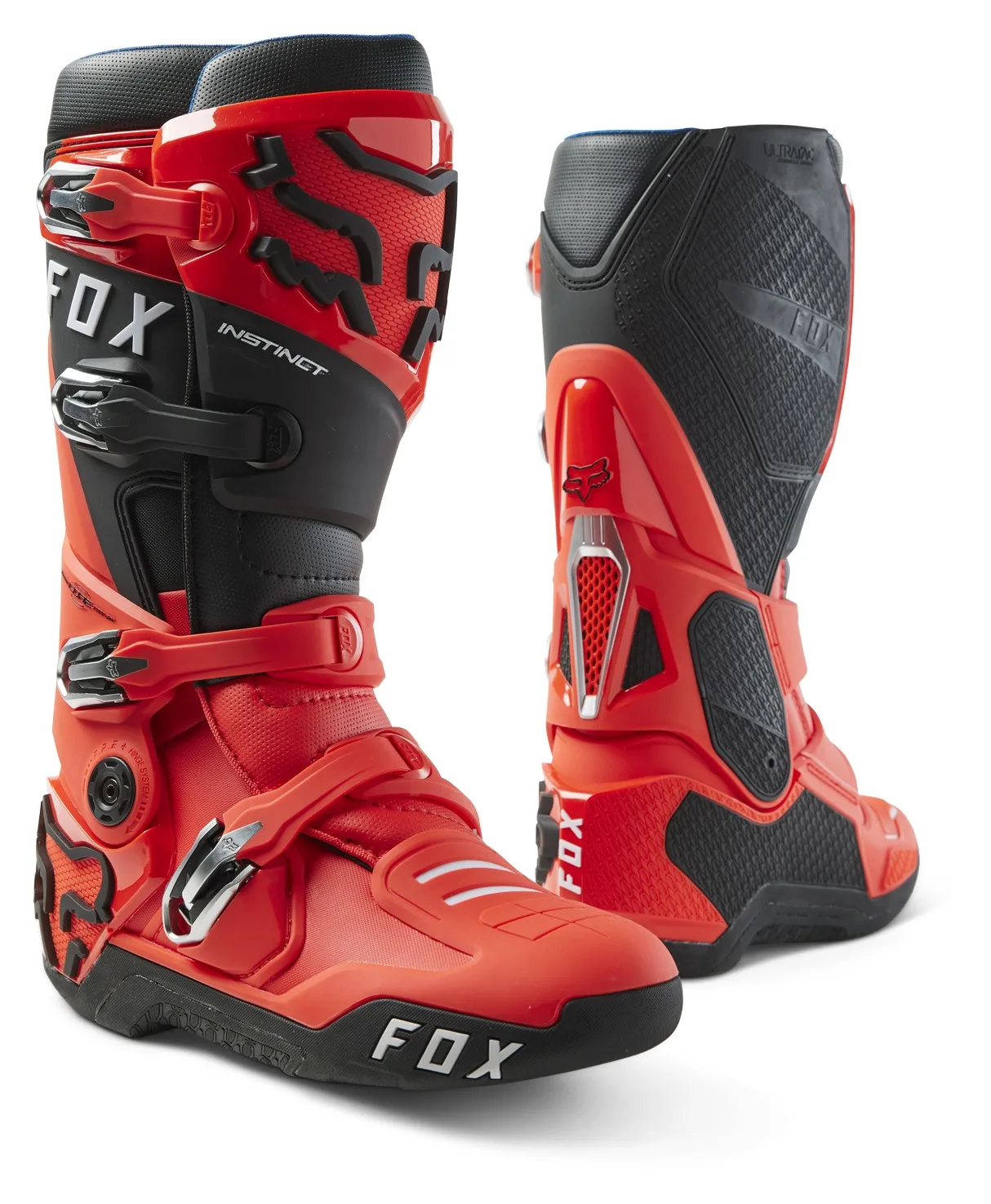 Ботинки Instinct, обновленные дизайн и созданные на основе новой улучшенной колодки, предлагают превосходные характеристики прямо из коробки. В этих ботинках для бездорожья профессионального уровня также обновлена ​​новая запатентованная система застежек с пряжками, которая обеспечивает надежную фиксацию и идеальную посадку по всей поверхности ботинок, обеспечивая мгновенный комфорт при надевании. Кроме того, запатентованная система блокировки шарниров на этих ботинках останавливает движение перед переразгибанием. Эти первоклассные мотоботы имеют тонкий дизайн посередине, обеспечивающий интуитивное ощущение езды на велосипеде, и верх из синтетической кожи из микрофибры, обеспечивающий превосходный комфорт, посадку, гибкость и долговечность. Наша эксклюзивная резиновая смесь Fox ULTRATAC обеспечивает превосходную долговечность и беспрецедентное сцепление с подошвой, а также в нижней, средней и верхней части защиты от ожогов. Шасси с низкой посадкой опускает ногу ниже и ближе к подножке, что улучшает ощущение контакта с тормозом и рычагом переключения передач, а пластина на голень из ТПУ, носок, пятка и защита икры предназначены для обеспечения защиты. Для дополнительной защиты композитная манжета из нейлона и стекловолокна фиксирует и защищает лодыжку, а стелька с противоударной межподошвой и пяточная подушечка обеспечивают ударопрочность, устойчивость и поддержку подножки.