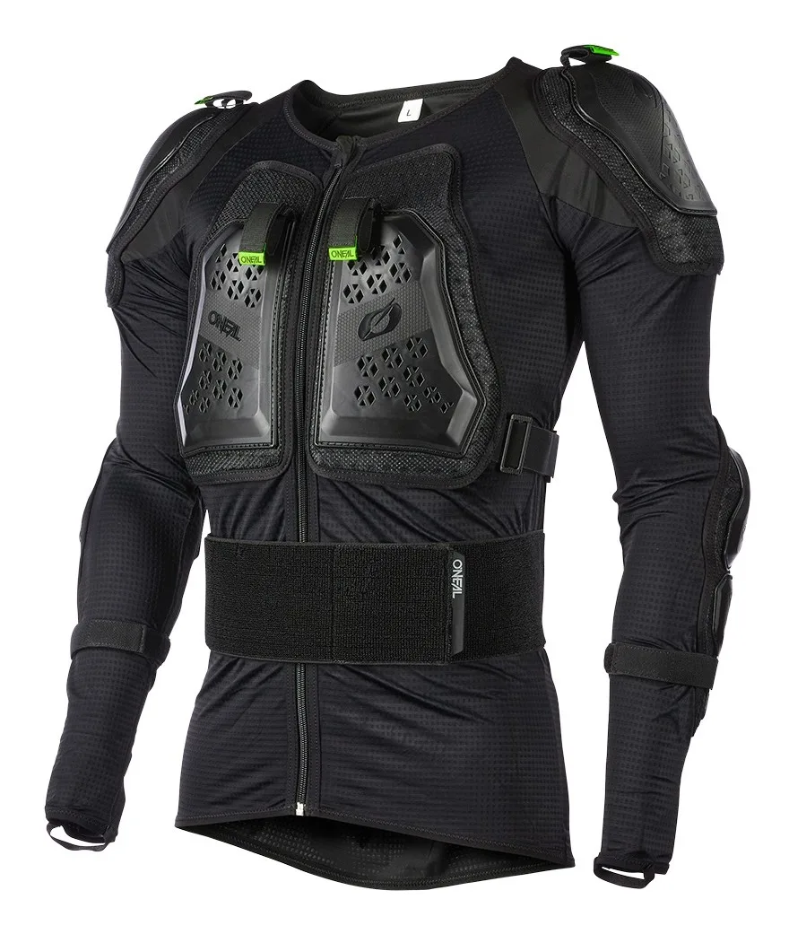 Надежная защита от ударов благодаря прочным пластиковым элементам на спине, груди, плечах и локтях