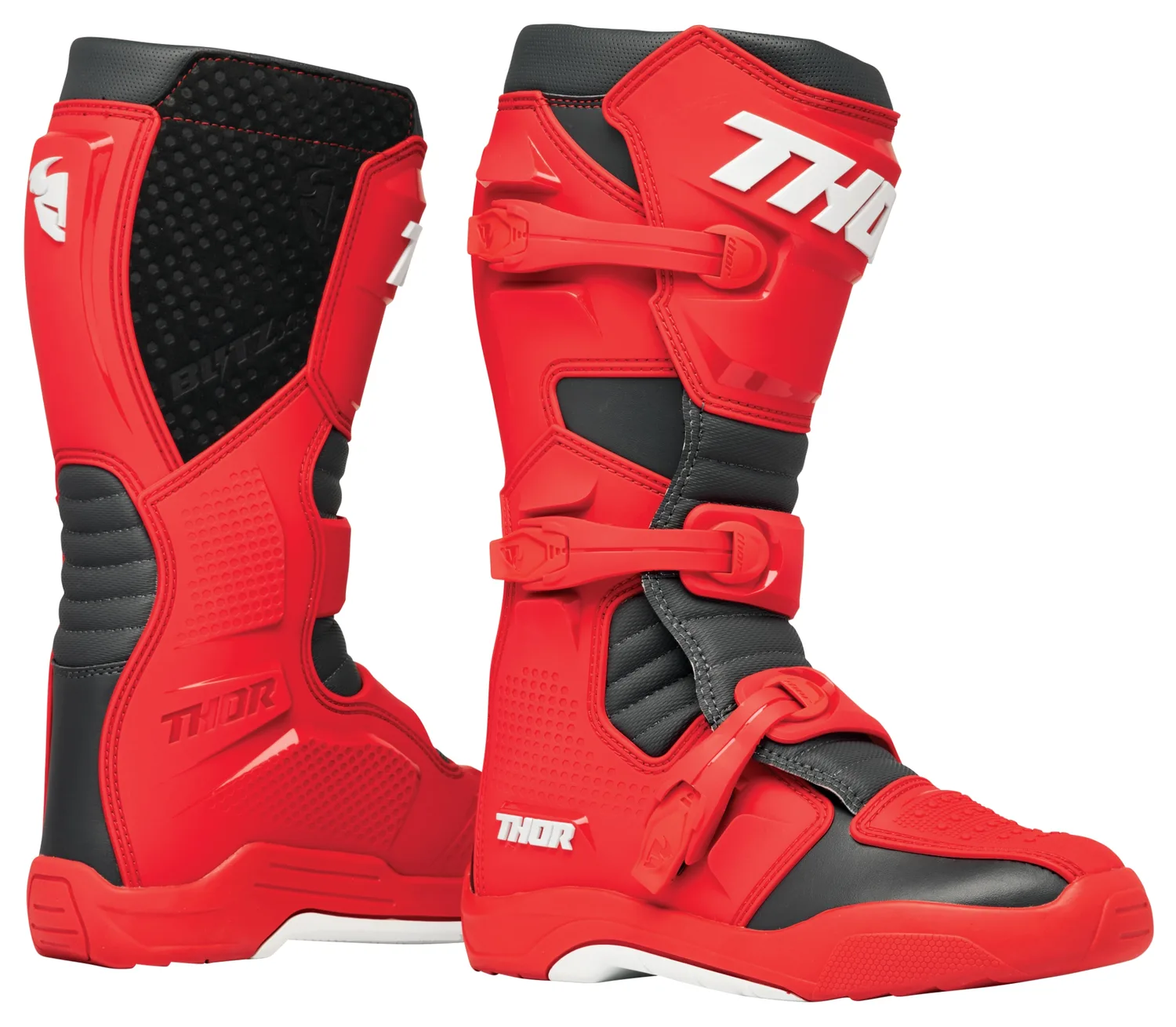 Ботинки Thor Blitz XR имеют мягкую внутреннюю часть из сетки для улучшения воздухопроницаемости и встроенную защиту от смещения благодаря отлитой под давлением средней абразивной пластине. Эти ботинки обеспечивают комфорт и безопасность. Полностью синтетические накладки на икры обеспечивают долговечность и сцепление, а отлитая под давлением подошва со стальной вставкой в голени, предварительно изогнутой пластиной для голени и регулируемыми ремнями обеспечивает индивидуальную посадку с учетом каждого гонщика.