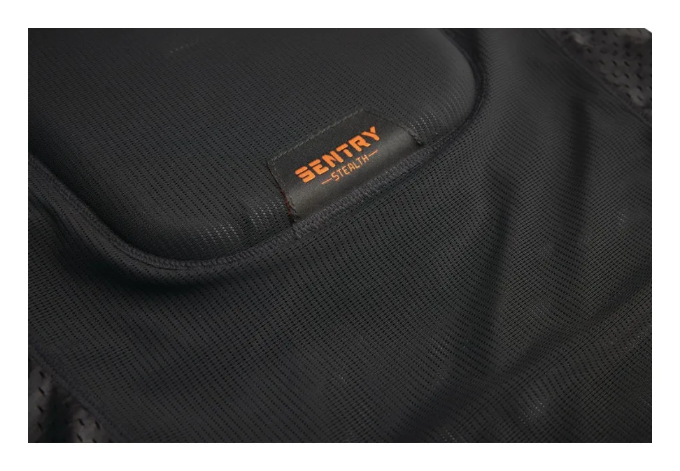 Мягкий и дышащий материал корпуса скрывает по-настоящему защитную природу Sentry Stealth, поскольку он оснащен съемными противоударными накладками для груди, спины, плеч и локтей. Защитные приспособления гибкие и низкопрофильные, поэтому их можно носить под футболкой. Они усилены вентилируемыми влагоотводящими материалами, которые обеспечивают удобную посадку и сохраняют прохладу в течение долгих дней.