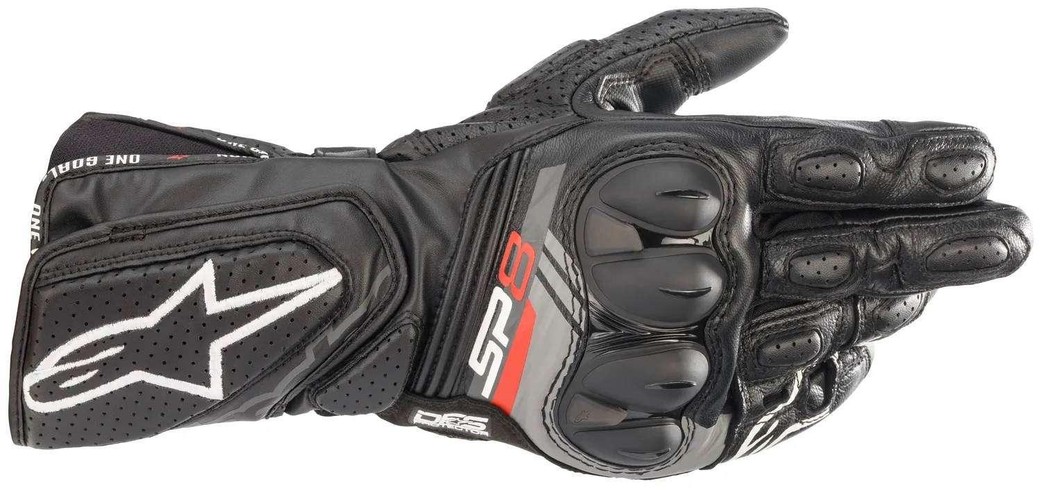 Кожаные перчатки SP-8 v3, наполненные гоночной ДНК, изготовлены из очень устойчивой к истиранию натуральной козьей кожи и материала из синтетической кожи и обеспечивают высокий уровень защиты благодаря усовершенствованной защите суставов пальцев двойной плотности SP, разработанной на базе MotoGP. Благодаря конструкции пальца предварительной формы, застежке-липучке и новой вставке с анатомическим профилем на ладони и большом пальце эти перчатки обеспечивают надежную и персонализированную посадку при езде, а также высокий уровень свободы движений и комфорта.