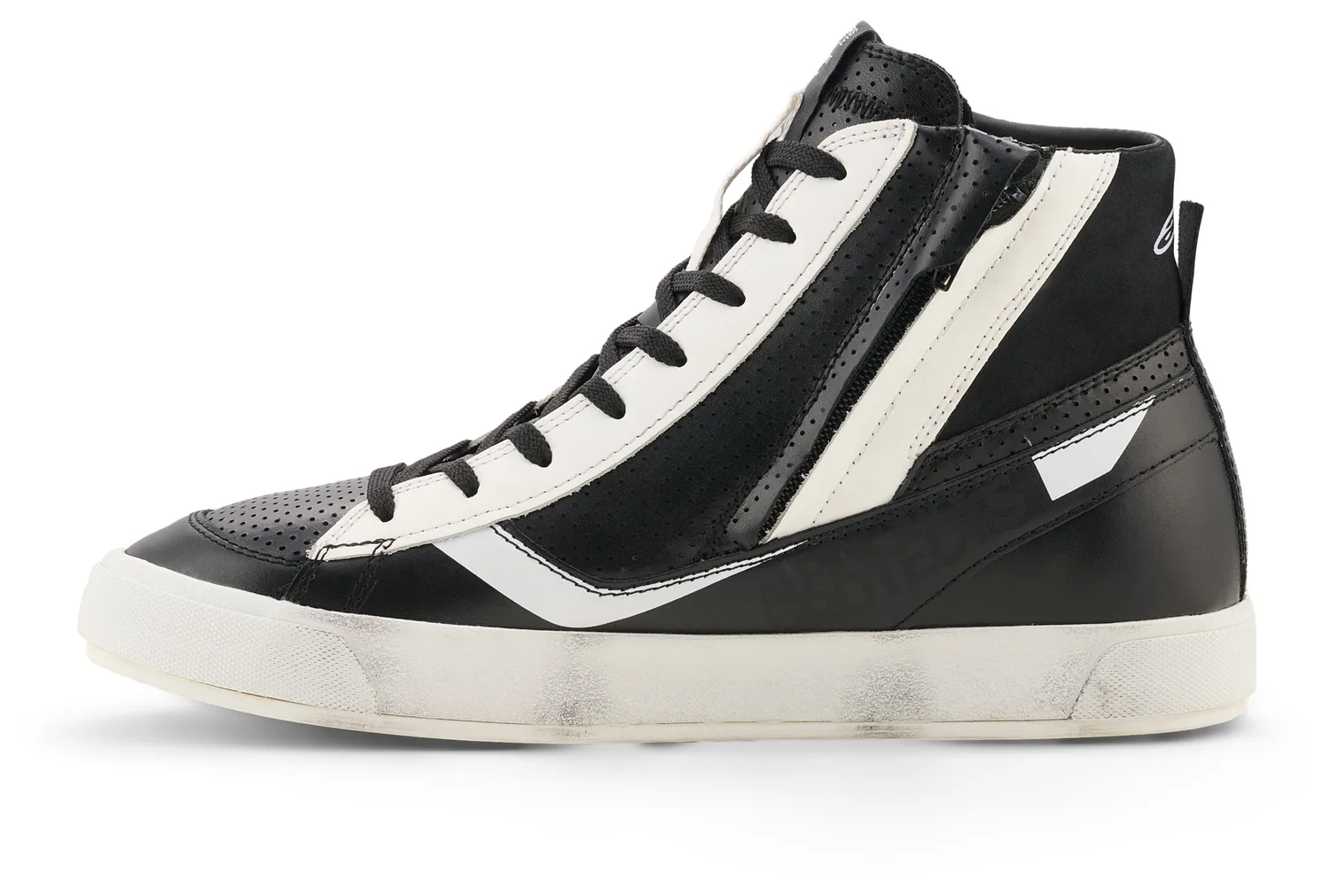 Компактный профиль, высокий верх с девятью отверстиями, классической системой боковой шнуровки и боковой застежкой-молнией для надежного закрытия и простоты использования