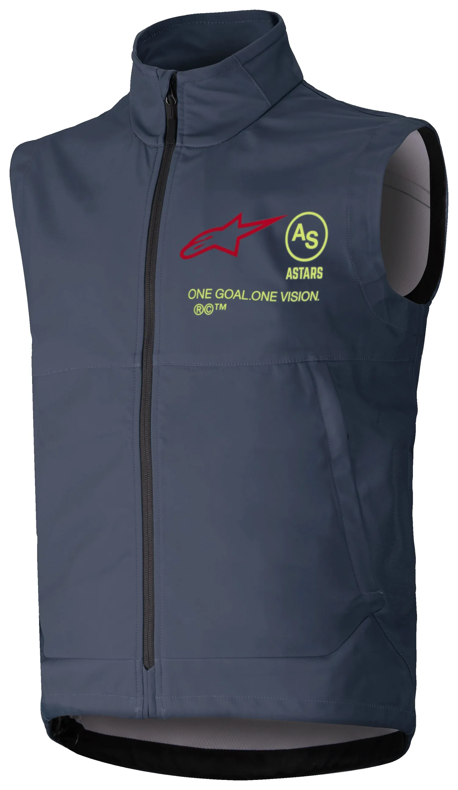 Фирменный стиль и графическая обработка в стиле MX с девизом и надписью Alpinestars ONE GOAL ONE VISION на верхней части спины
