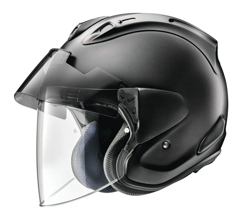Ram-X включает в себя прозрачный лицевой щиток во всю длину для хорошей защиты от ветра и непогоды. В комплект поставки входит противозапотевающая вставка VAS-Z Pinlock 120 - редкая роскошь за пределами сферы полнолицевых шлемов. В дополнение к этому списку в комплект входит солнцезащитный козырек Arai Pro Shade с солнцезащитным козырьком темного дыма.