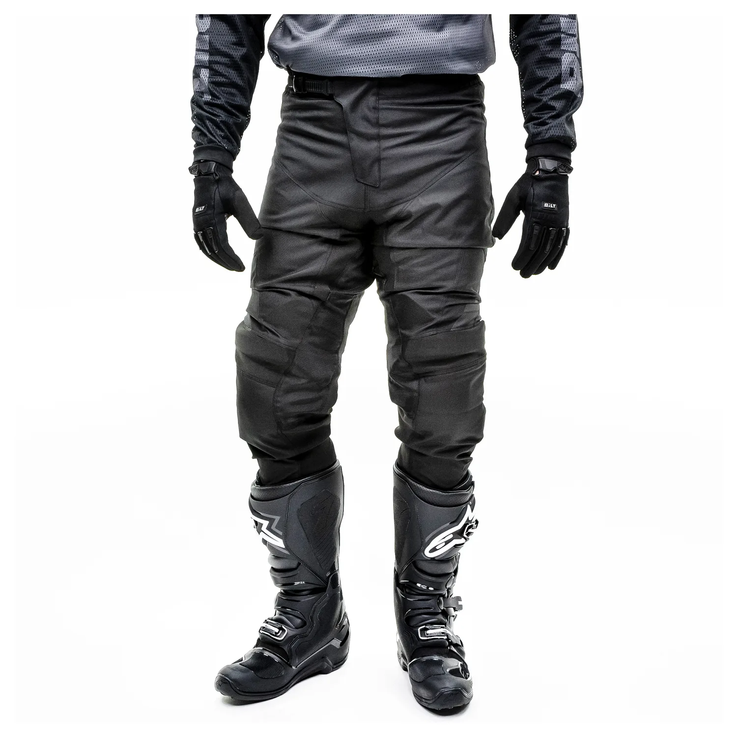 Брюки BILT Velocity MX имеют прочную конструкцию из нейлона плотностью 600D, выдержавшую последние сезоны интенсивного использования и истирания. Зоны защиты от ударов на задней кокетке, а также в нижней части и внутренней части штанин покрыты эластичным материалом открытого переплетения для комфорта и циркуляции воздуха. Предварительно изогнутый крой подходит для широкого спектра положений при езде. На талии райдеры имеют быстросъемную застежку с храповым механизмом для легкой регулировки на ходу. Силиконовая ручка на внутренней стороне талии удерживает трикотажные изделия заправленными и гарантирует, что брюки останутся именно там, где вы их положили. В брюках Velocity используются молнии YKK и мягкие колени с мягкой подкладкой.